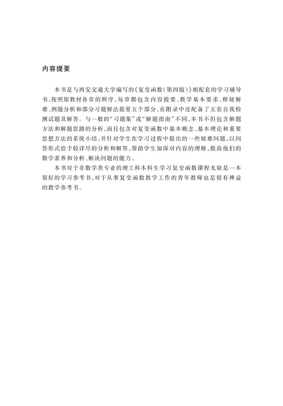 本书是与西安交通大学编写的《复变函数(第四版)》相配套的学习辅导书,按照原教材各章的顺序,每章都包含内容提要、教学基本要求、释疑解难、例题分析和部分习题解法提要五个部分,在附录中还配备了五套自我检测试题及解答。与一般的“习题集”或“解题指南”不同,本书不但包含解题方法和解题思路的分析,而且包含对复变函数中基本概念、基本理论和重要思想方法的系统小结,并针对学生在学习过程中提出的一些疑难问题,以问答形式给予较详尽的分析和解答,帮助学生加深对内容的理解,提高他们的数学素养和分析、解决问题的能力。 本书对于非数学类专业的理工科本科生学习复变函数课程无疑是一本很好的学习参考书,对于从事复变函数教学工作的青年教师也是很有裨益的教学参考书。 |