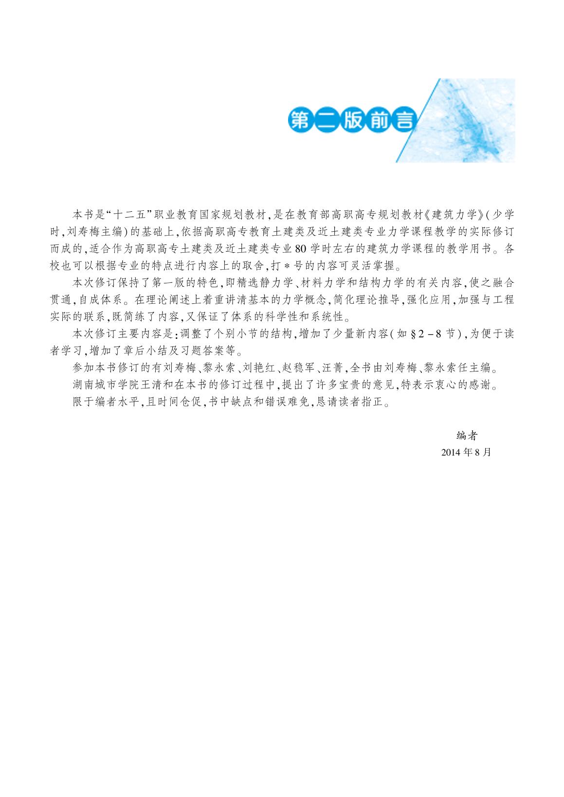 本书是“十二五”职业教育国家规划教材,是教育部高职高专规划教材《建筑力学》(少学时,刘寿梅主编)的修订版,本书根据高职高专土建类人才的培养特点,精选静力学、材料力学和结构力学的有关内容,使之融合贯通,自成体系。主要内容包括绪论,建筑力学基础知识,平面力系,静定结构的内力与内力图,杆件的应力与强度计算,结构的位移计算和刚度校核,超静定结构的内力分析,压杆稳定,截面的几何参数共9章。 本书可作为高等职业学校、高等专科学校、成人高校及本科院校举办的二级职业技术学院和民办高校土建类及近土建类专业少学时力学课程的教材,也可供相关的工程技术人员参考。 |