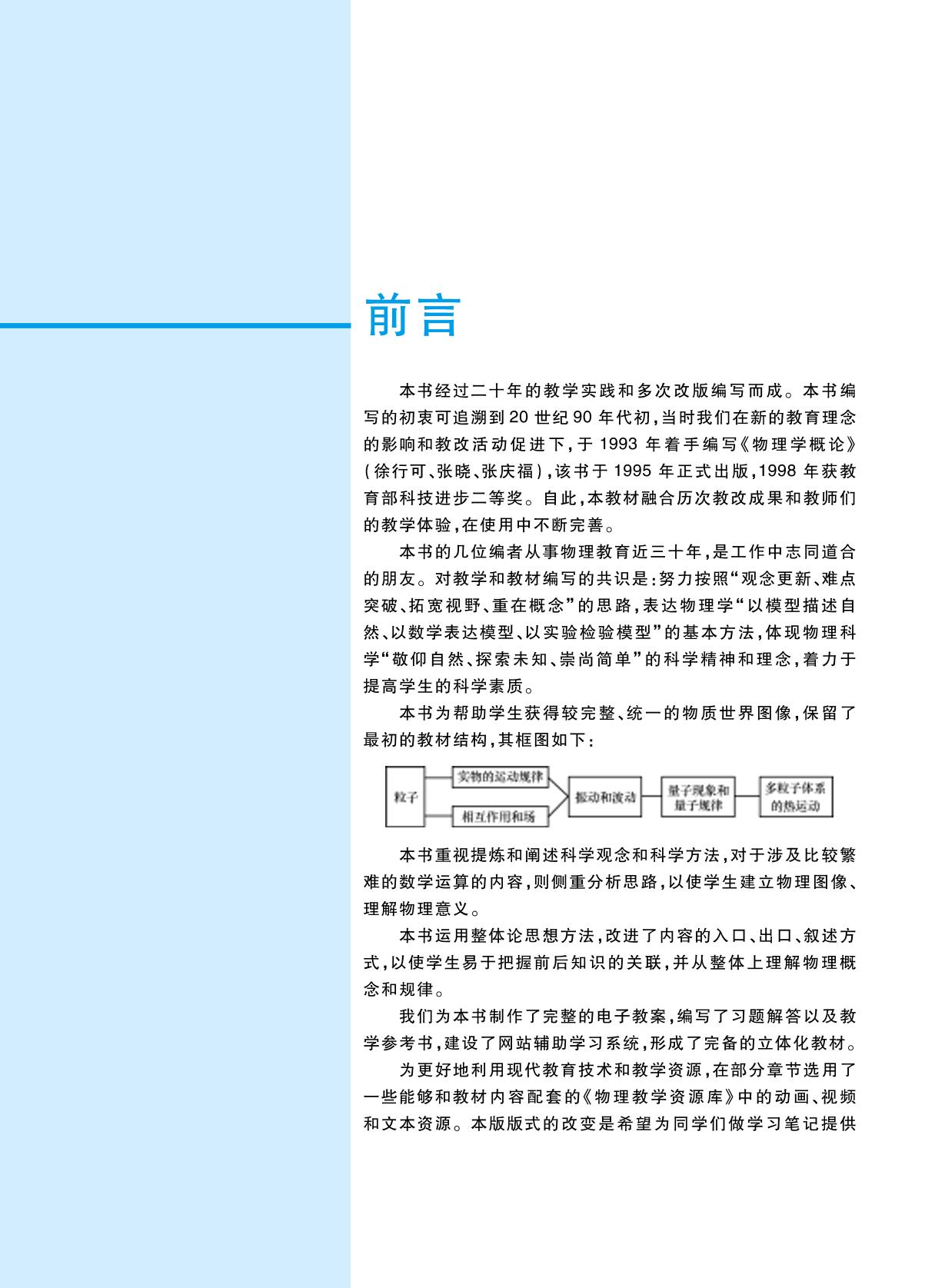 本书是参照教育部物理基础课程教学指导分委员会编制的《理工科类大学物理课程教学基本要求》(2010年版)编写的。全书分为上、下两册,涵盖了基本要求中的核心内容。 本书在体系上以物质的基本存在形式和基本性质为主线,对传统教材的结构模式有所突破,主要表现在内容上压缩了经典部分,加强了近代部分,反映前沿内容并保持基础课风格。全书始终融会着关于物质世界的对称性和统一性的物理思想,力图使学生在学习基础物理知识的同时受到科学思想和科学方法的培养和熏陶。 本书可以作为高等学校理工科非物理类专业大学物理课程的教材,也可供其他读者阅读参考。 |
