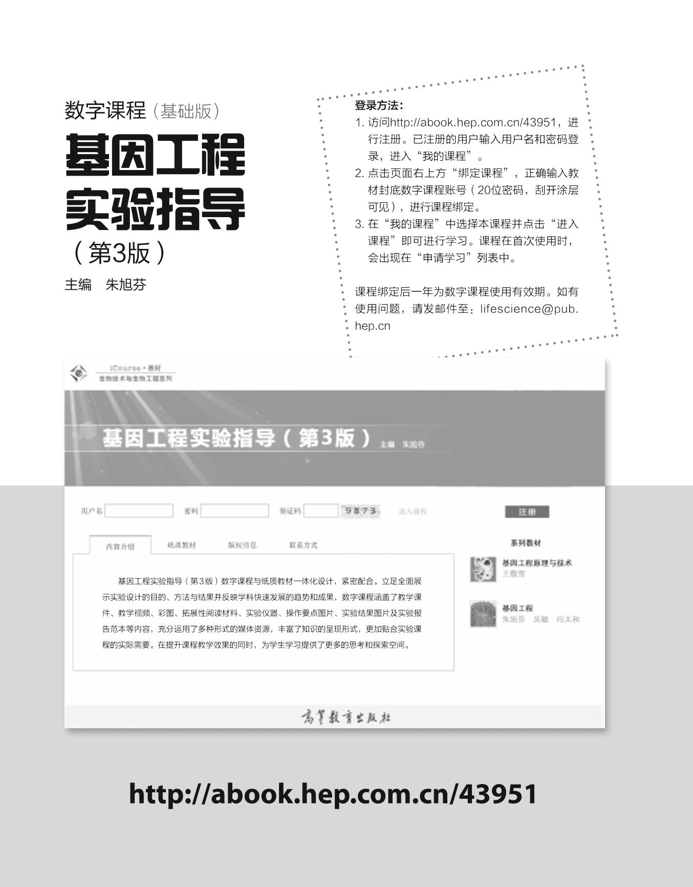 本书以基因克隆为主线,实验内容涉及核酸的提取与检测,靶基因的获取,基因定点突变、沉默与敲除,质粒的重组,原核及真核表达系统的构建与表达,蛋白质分析与目标产物分离等。每个实验板块由导言、知识导图以及5 ~ 9 个不同的实验组成,系统介绍了实验的相关基本原理,为同一实验项目提供了多种可供选择的实验方法,强调注意事项,并对实验相关的内容进行评议。第3 版还着重扩充了基因工程领域的新技术和新发展。 本书配套数字课程(http://abook.hep.com.cn/43951)提供了与教材相结合的教学课件、教学视频、彩图、拓展性阅读材料、实验仪器、操作要点图片、实验结果图片及实验报告范本等资源,便于教师教学和学生学习使用。 本书适用于高等学校生物技术、生物工程、生物科学等相关专业本科教学使用,也可供从事基因工程教学、科研、生产的工作人员和研究生参考。 |