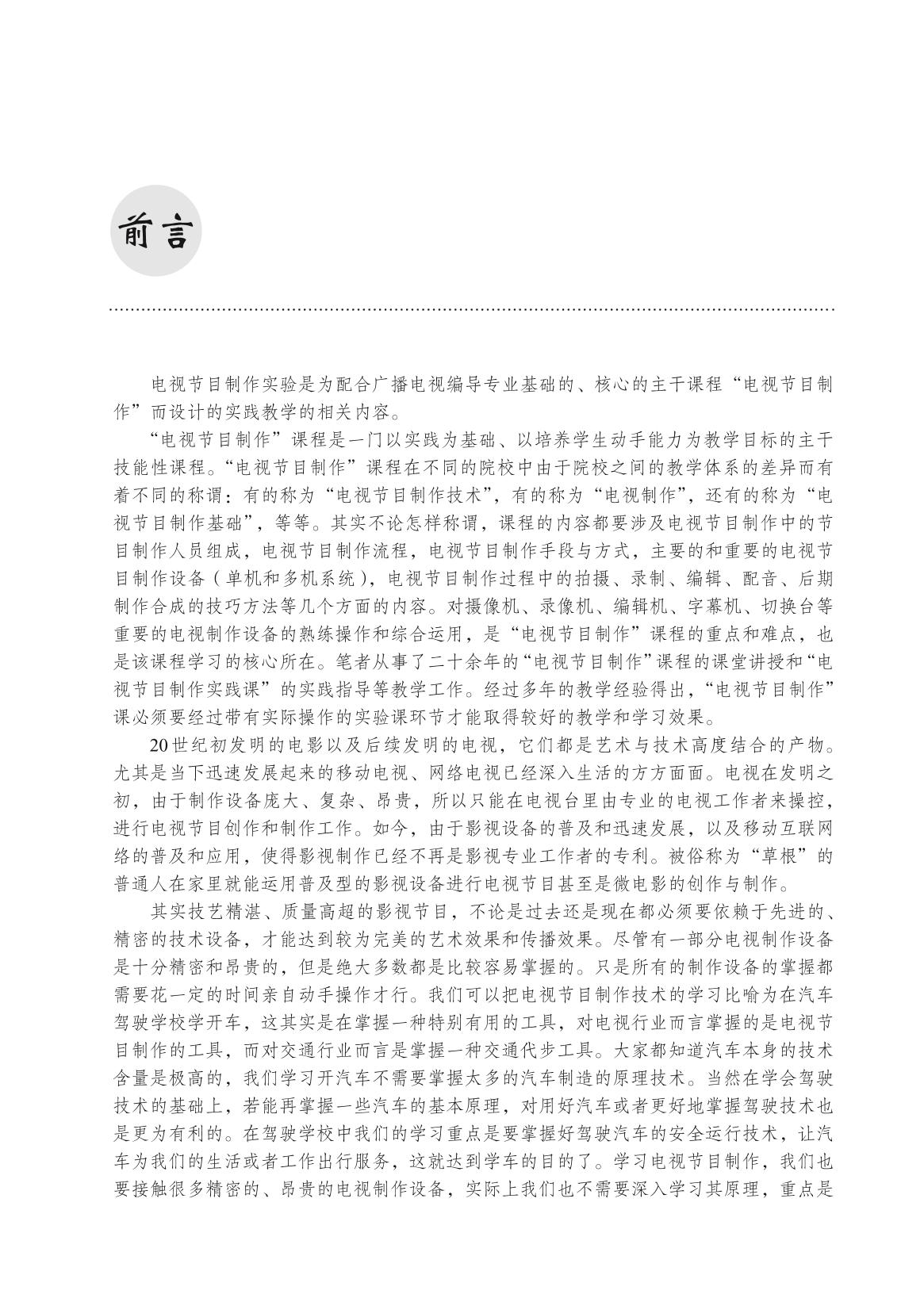本书作为“电视节目制作”课程的辅助实验课教材,为加深学生对电视制作设备功能的记忆和调整操作的理解、提高学生实践能力发挥了重要的作用。 本书共有八章:电视摄像机的功能与操作、电视录像机的功能与操作、磁带电子编辑系统与磁带电子编辑操作、电视非线性编辑制作流程、字幕机的操作、电视演播室系统演示与切换台操作演示、电视节目配音实验、电视节目音响合成实验。每章后都配有二维码关联相关测试题,读者可在每章学习后进行自测自评。 本书内容丰富新颖,可作为普通高校影视专业“电视节目制作”课程的辅助实验课教材,也可供广播电视领域工作者作为熟悉电视制作设备的使用操作技术的重要参考工具书,一般读者和广大电视艺术爱好者也可参照本书开展专业化的电视作品创作与制作训练。 |