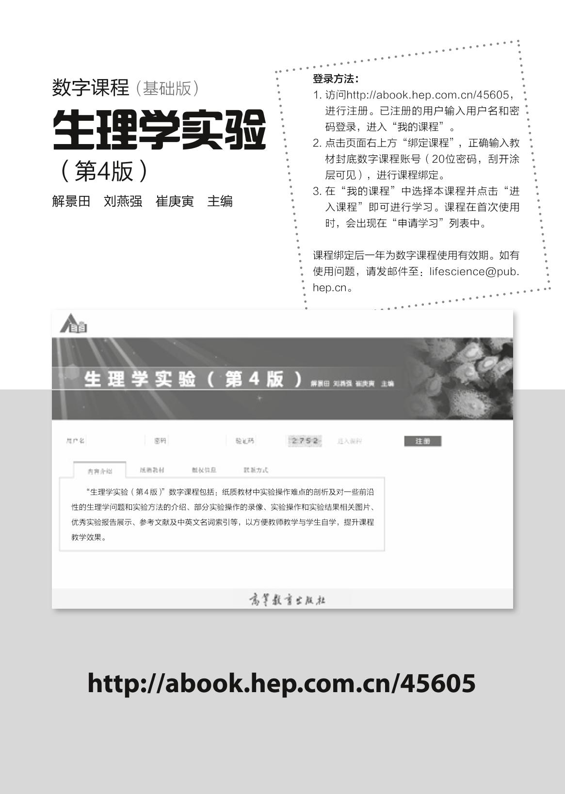 本教材以高等院校“生理学实验”课程与教材持续建设为基础,共有11章72个实验项目,涵盖基本组织器官生理学实验教学内容,涉及整体与宏观生理学、器官与组织生理学、细胞与分子生理学的不同层面、不同深度的实验。 本教材的修订坚持系统性、综合性、研究性和先进性原则,更加注重学生创新能力的培养。保持教材第3版的主要特点:注重实验体系层次的完善、实验的原创性和可操作性、实验方法的探索研究以及实验报告与论文的撰写。尤其加强了实验背景的介绍,增加了对学生创新意识的启发性,希望能“点燃”学生创新意识的火苗;配套数字课程网站(http://abook.hep.com.cn/45605)包括了生理学相关知识扩展、部分实验操作的录像、实验操作和实验结果相关图片、优秀实验报告展示、参考文献及中英文名词索引,以方便教师教学与学生自学。 本教材适合高等院校生物科学、生物技术、医学和体育学等专业的生理学实验教学,也可供相关科研人员参考。 |