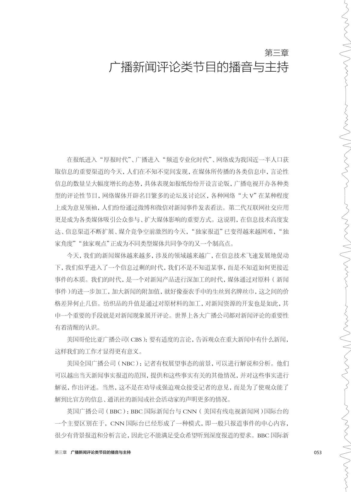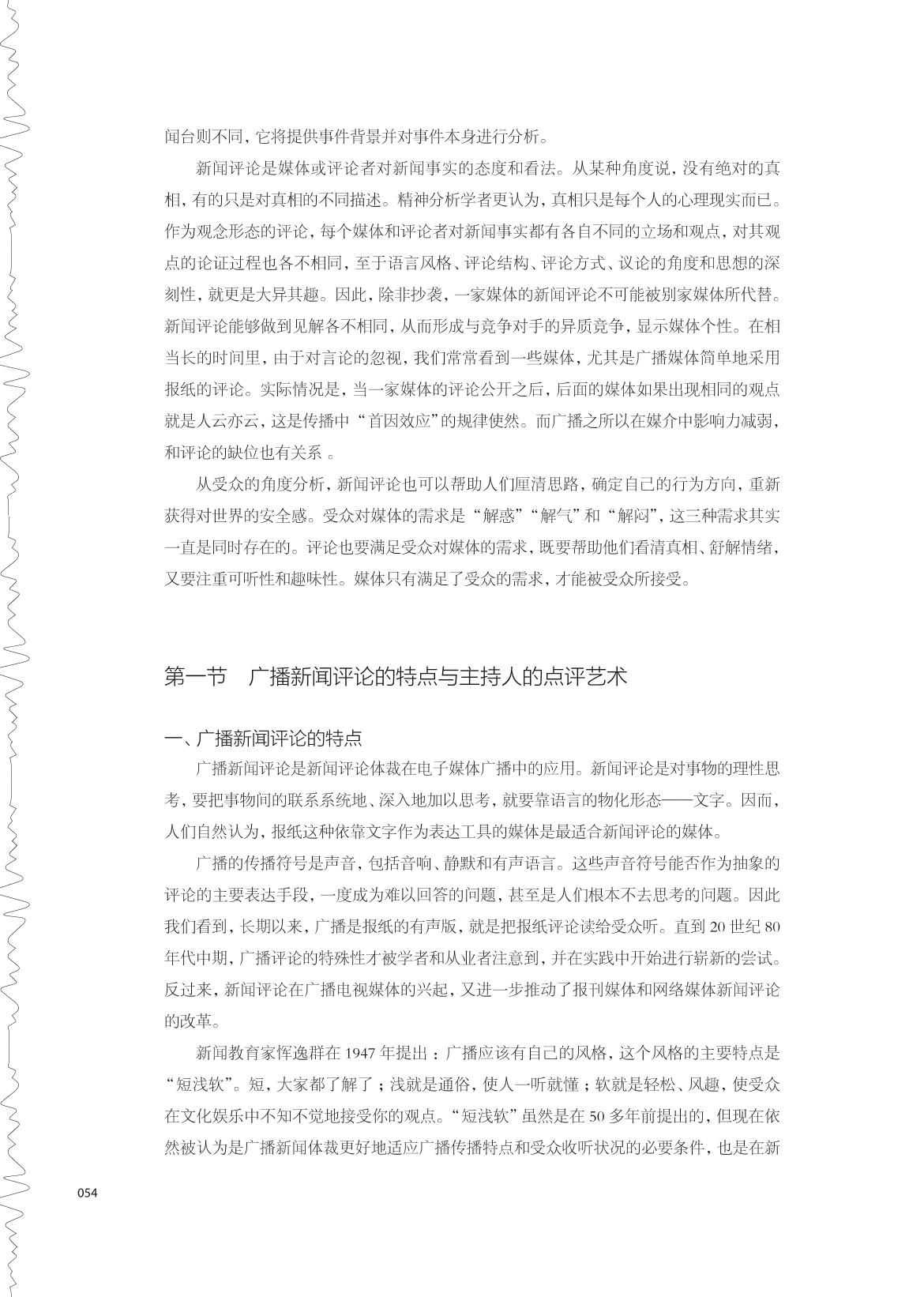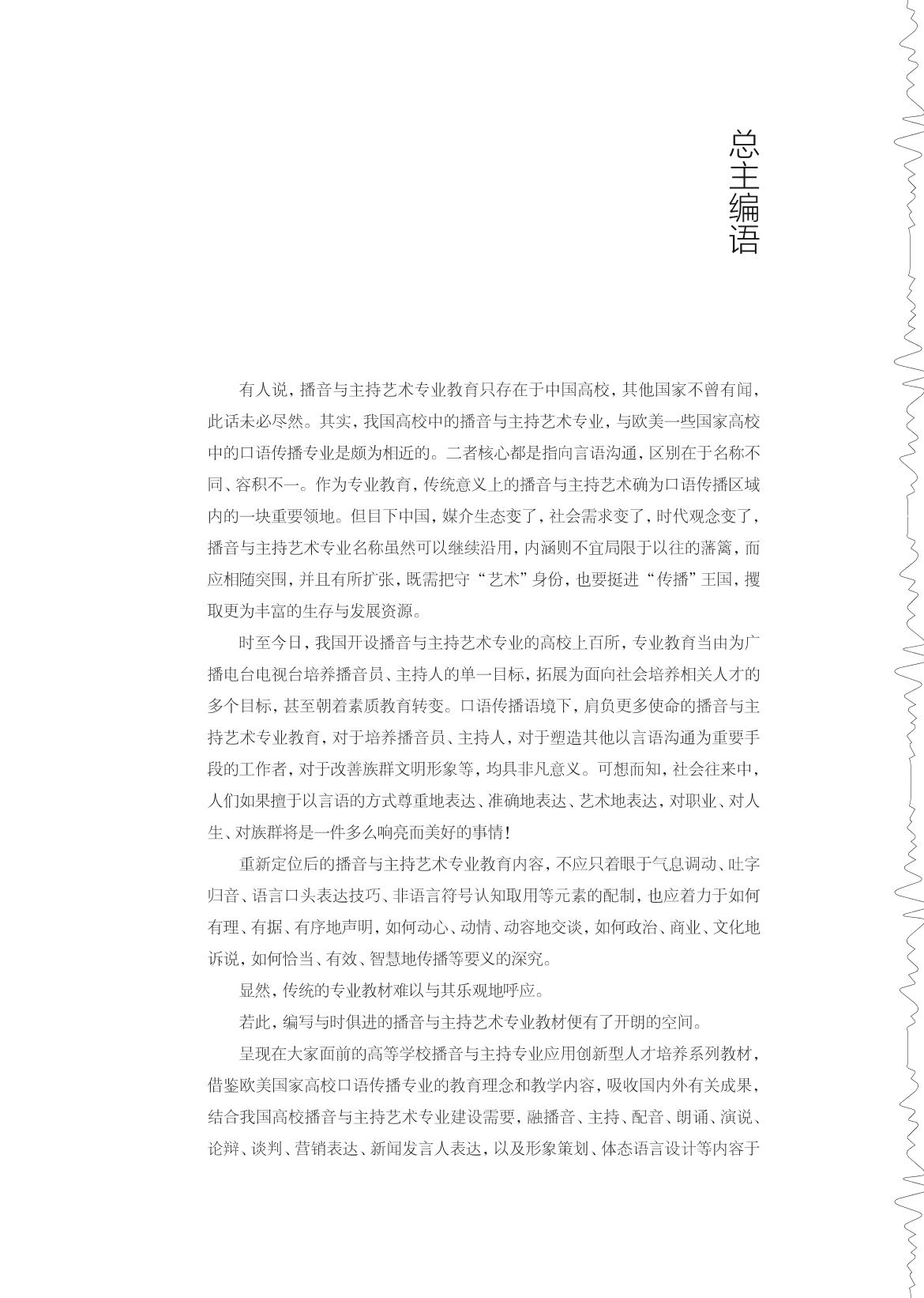 “广播播音与主持”是播音与主持艺术的专业主干课,是在学生掌握了基本的播音发声技巧和语言表达技巧的基础上,根据广播媒介的特点,对有声语言进行艺术创作的课程。作为该课程的教材,本书通过介绍广播媒介的特征和分析广播节目的类型、样态,使学生了解如何在不同的广播节目中寻找不同的表达方式,如何在符合节目语境和语言标准的条件下展现个性,如何让自己成为节目的主导和核心。本书语言浅显,通俗易懂,并通过二维码关联了大量的广播节目的案例及音频,打破了一般教材较为枯燥的表达方式。 本书适用于各高校播音与主持专业的学生,同时也可供广大广播爱好者阅读。 |