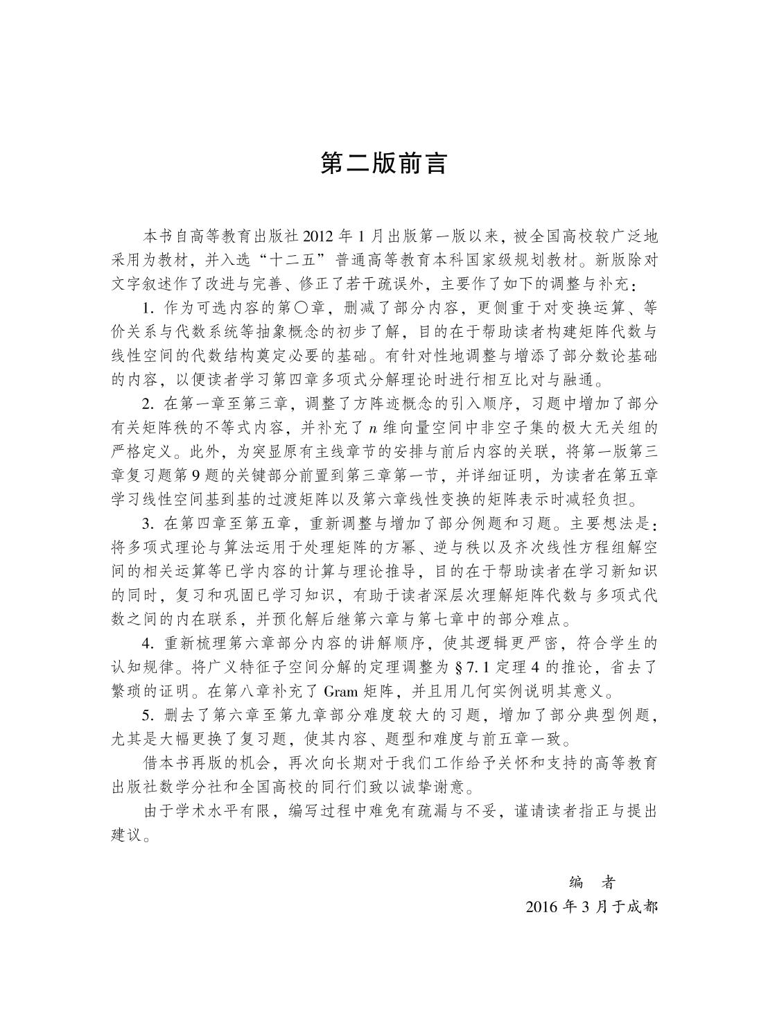 本书是作者在多年教学实践和研究的基础上, 吸取若干国内外教材的优点, 创新教材内容体系和教学方法编写而成的, 理论体系的处理更加科学、简洁, 易教易学。全书主要内容包括代数理论的预备知识、矩阵及其初等变换、行列式、n 维向量空间、多项式、线性空间、线性变换、Jordan标准形与λ-矩阵、欧氏空间、二次型与双线性函数等。 本书可作为高等学校数学类专业高等代数课程的教材或教学参考书。 |