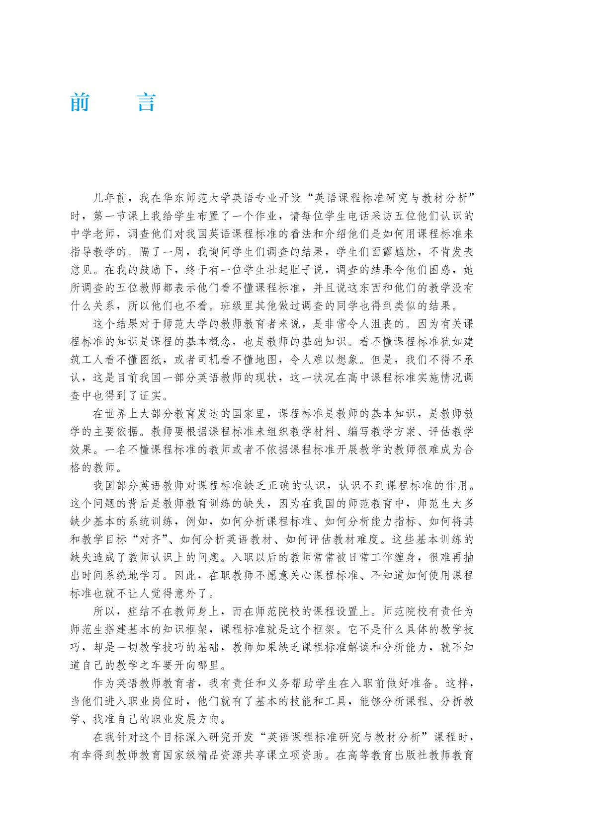 本书为教师教育国家级精品资源共享课配套教材。本书运用课程理论和认知语言学原则,把课程标准、教学、教材、评估等相关要素统一在一个理论框架中,帮助读者理解课程标准的分析方法,掌握“对齐”技术和教材内容分析、教学活动和教材难度的评估工具。 扫描书中的二维码可以观看相关视频资源;登录“爱课程”网(www.icourses.cn)搜索本课程,可以进行在线学习。 本书对于英语(师范)专业本科生、学科教学论专业研究生以及英语教师的在职培训具有较强的实用价值。 |