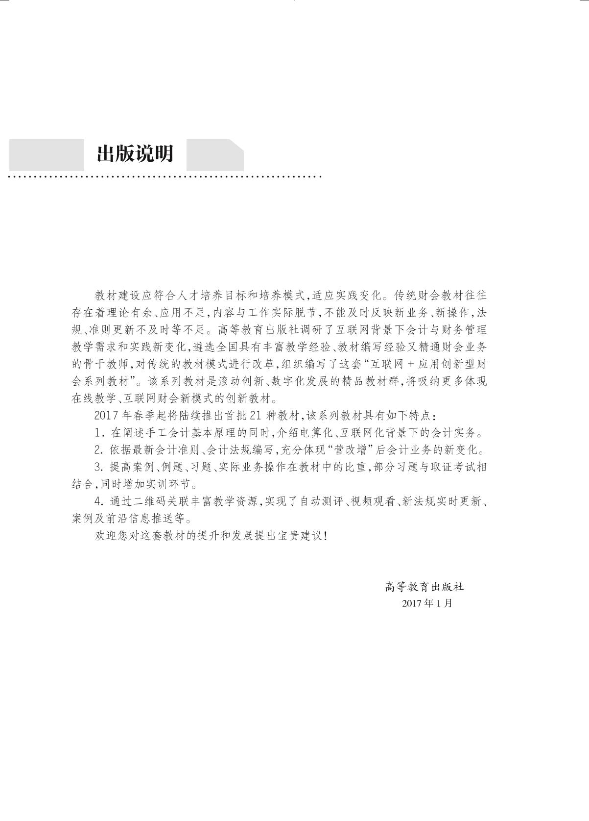 本书是“互联网+ 应用创新型财会系列教材”之一。本书根据财政部制定的《企业会计准则》和《企业产品成本核算制度(试行)》(2014 年1 月1 日起施行)等部门规章和规范性文件,结合应用型本科财会类专业教学需要编写。 全书以工业企业为会计主体,力求体现理论够用、应用为主,并提供丰富的互联网资源。 全书共分为五篇十五章。第一篇为成本会计理论,包括第一章、第二章,阐述成本会计的基本理论和成本核算程序。第二篇为成本项目核算,包括第三章至第六章,阐述直接材料、直接人工、辅助生产费用、制造费用、废品与停工损失费用等核算内容。第三篇为在产品成本计算,主要为第七章,阐述在产品数量核算、完工产品结转等。第四篇为产品成本计算方法,包括第八章至第十三章,详细讲解品种法、分批法、分步法、分类法、定额法、作业成本法的核算。第五篇为成本报表编制与成本管理,包括第十四章、第十五章,阐述成本报表的编制与分析以及成本管理的相关内容。 本书可作为应用型本科院校、高职和成人教育院校会计学、财务管理学等专业相关课程的教材,本科院校建议68 课时,其中作业成本法、成本分析、成本管理可以略讲,其他章节精讲;高职院校64 课时,省略作业成本法、成本管理部分。本教材也可作为企业会计人员的参考用书。 |