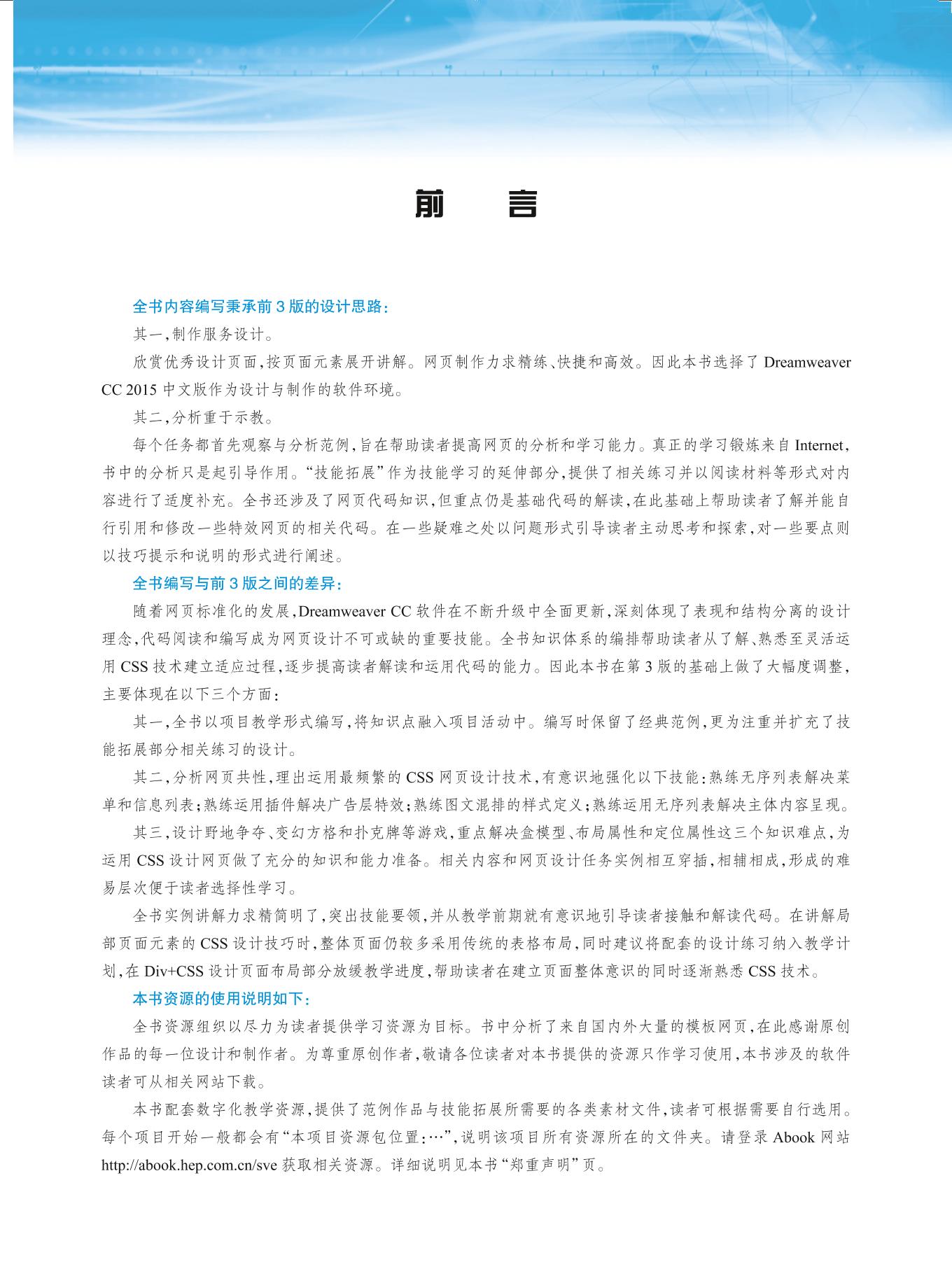 本书是计算机平面设计专业系列教材,按照项目教学法编排相关学习内容,介绍网页设计及常用软件的使用方法。本书侧重分析作品中的技术要点,引导和帮助读者提高学习能力。精美范例的讲解使读者不仅可以掌握该软件的使用方法,还能够提高美术修养。全书知识体系的编排与设计遵循认知规律,大量范例帮助读者在建立页面整体意识的同时逐渐熟悉技术操作。 本书主要内容包括主页欣赏及页面分析、网站设计与规划、DreamweaverCC 2015 站点建设、Dreamweaver CC 2015 基本应用、模板与库、HTML与CSS 基础、多媒体网页设计、网页中IFrame 框架的运用、导航菜单设计、表格页面布局、Div+CSS 页面布局、插件与特效、综合实例、表单及交互式网站设计。 本书配套数字化教学资源,提供了范例作品与技能拓展所需要的各类素材文件,请登录Abook 网站http://abook.hep.com.cn/sve 获取相关资源。详细说明见本书“郑重声明”页。 本书可作为职业学校计算机平面设计及相关专业的教学用书,也可作为各类计算机美术培训班的教学用书,还可供广大计算机美术爱好者参考使用。 |