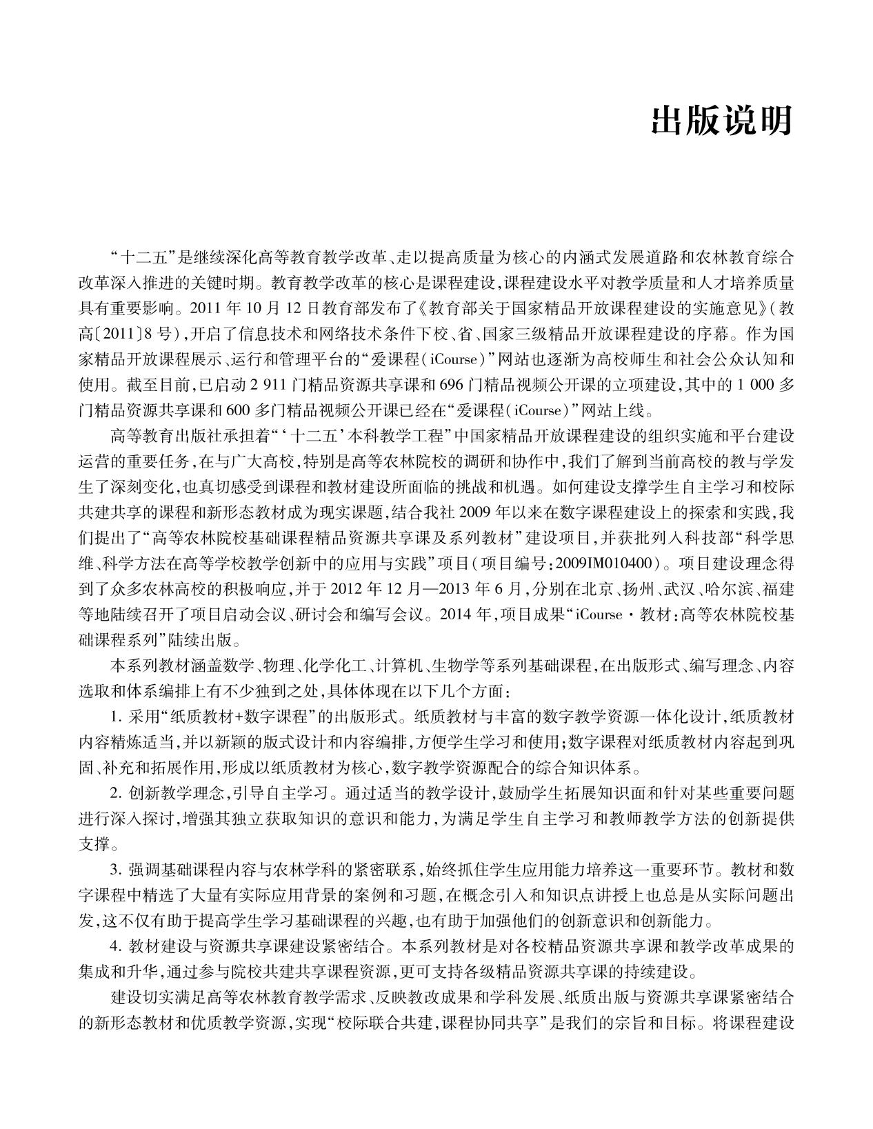 本书是在王国栋教授主编的普通高等教育“十一五”国家级规划教材基础上修订而成的。本书根据农林院校的特点,在总结西北农林科技大学物理系列课程教改研究成果的基础上,结合多年教学实践,建立了适合物理实验课独立开课要求的教材体系。 全书共分6章,按测量误差与数据处理、常用基本物理量的测定方法及特点、物理实验技术和方法、基本实验、综合实验、设计实验的顺序编排。考虑到不同学校实验仪器设置和教学安排的实际,部分实验提供了两种或两种以上方法,以利于师生进行自主选择。每个实验后附有思考与练习题,便于学生巩固实验所学知识。 本书可作为高等学校理工科非物理类和农科类各专业的大学物理实验教材,也可作为高等职业技术学校相关专业和农林科技工作者学习和科学实验的参考书。 |