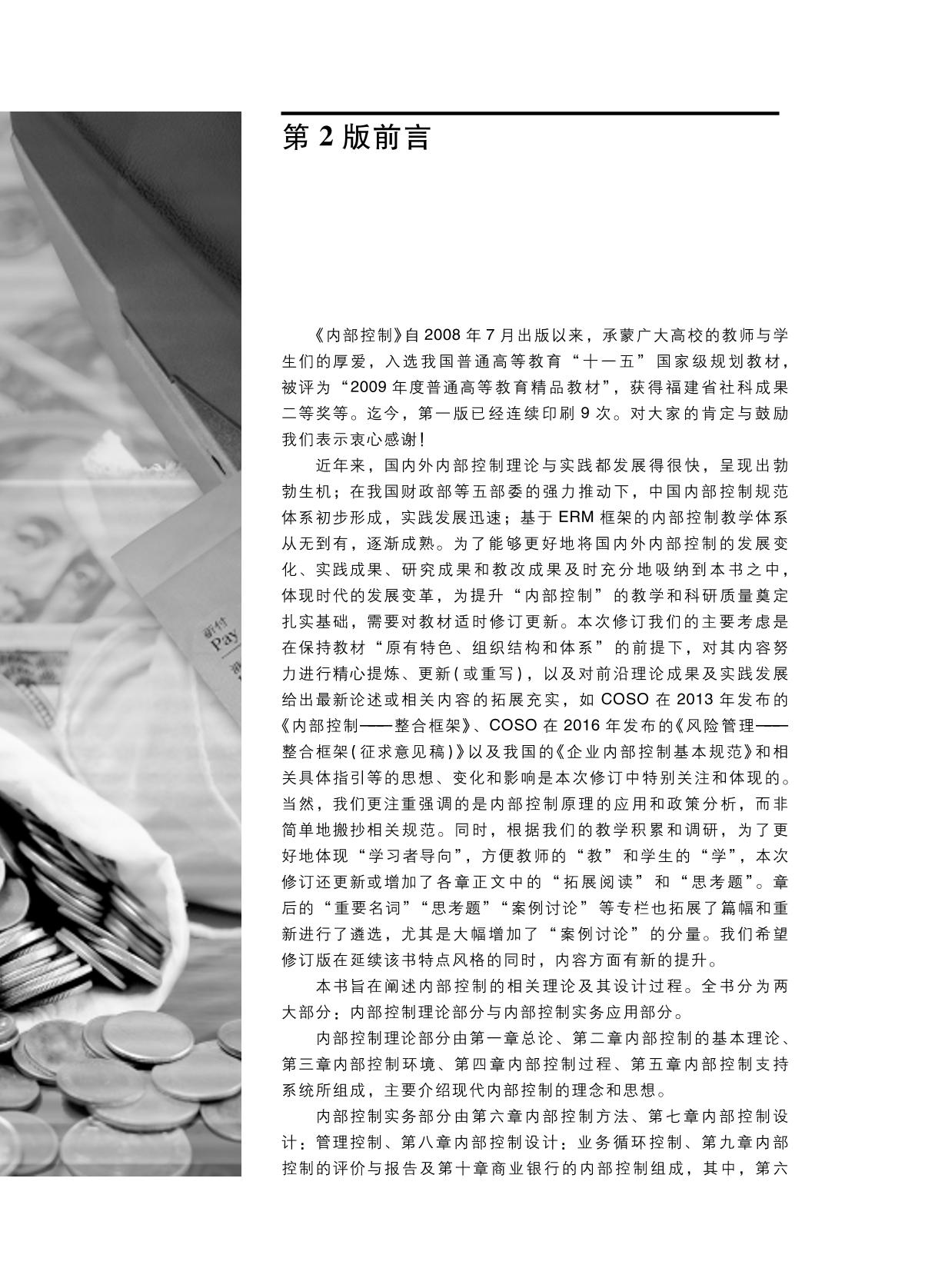 本书是普通高等教育“十一五”国家级规划教材,高等学校会计学专业、财务管理专业核心课程教材。 本书依据内部控制领域的新进展,结合国内外的经典案例,在第一版的基础上,构建了基于风险管理整体框架的内部控制的教学内容体系。全书共十章,在第一章总论之后分九章分别论述了基于ERM框架的内部控制的基本理论、内部控制环境、内部控制过程、内部控制支持系统、内部控制方法、内部控制设计、内部控制评估与报告、商业银行的内部控制等。 本书可作为普通高等教育本科会计学、财务管理专业的核心课程教材,同时适用于经济管理类相关专业教学,也可用于研究生教育、非学历教育和职业培训。 |