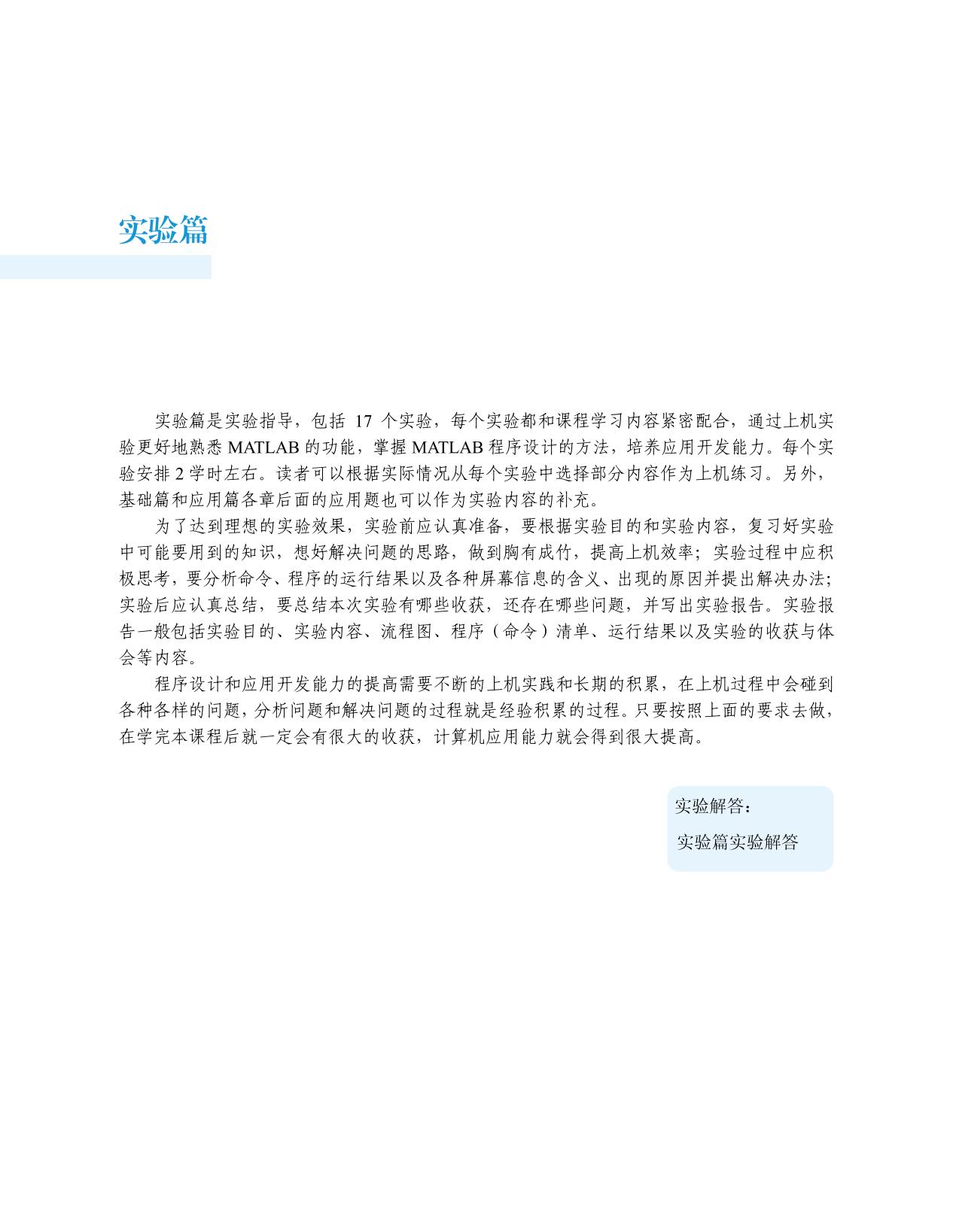 本书是对普通高等教育“十一五”国家级规划教材《MATLAB程序设计与应用》(第二版)的一次全面修订。全书总体保持第二版原有体系结构,但根据技术发展和应用的需要扩充了许多新内容。全书强调数学方法、算法原理和MATLAB实现技术并重,帮助读者更好地理解和应用MATLAB;注重理论与实践相结合,突出MATLAB在有关学科领域的应用,贴近读者需要;配套建设丰富的教学资源,依托网络平台,满足读者个性化学习需求。 全书分为基础篇、应用篇和实验篇。基础篇包括MATLAB系统环境、MATLAB 数据及其运算、MATLAB 矩阵处理、MATLAB 程序流程控制、MATLAB 绘图、MATLAB 数据分析与多项式计算、MATLAB 数值微分与积分、MATLAB方程数值求解、MATLAB符号计算。应用篇包括MATLAB图形对象句柄、MATLAB图形用户界面设计、MATLAB Simulink系统仿真、MATLAB外部程序接口技术、MATLAB的应用。实验篇包括17个实验,每个实验都和课程学习内容紧密配合,以方便读者上机练习。本书配套的中国大学MOOC“科学计算与MATLAB语言”请参见爱课程网。 本书可作为高等学校各专业大学生或研究生学习的教材,也可供广大工程技术与科研人员阅读参考。 |