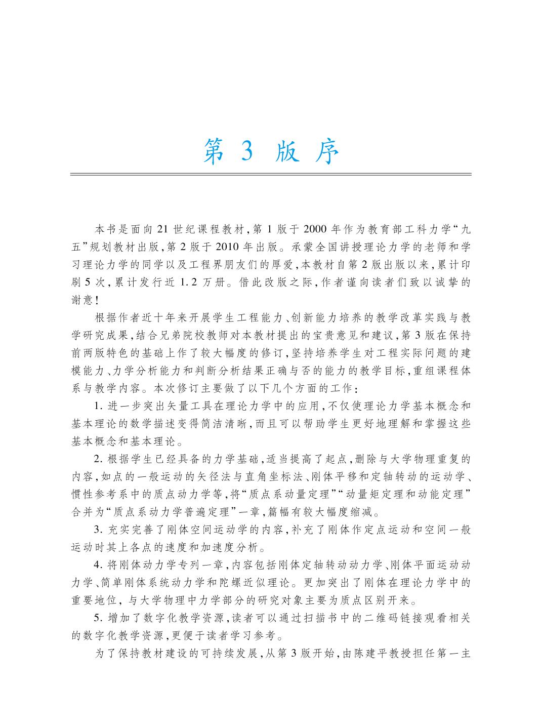 本书是面向21世纪课程教材,第1版于2000年作为教育部工科力学“九五”规划教材出版,第2版于2010年出版。第3版在保持前两版特色的基础上,根据作者多年来的教学实践与学生的认知规律,重组课程体系与教学内容,篇幅做了较大幅度的缩减,删除了与大学物理重叠的内容,强调了矢量工具的应用,充实了刚体空间运动学的内容,将刚体动力学专列一章,更加突出了刚体在理论力学中的重要性。书中增加了数字化教学资源,读者可以通过扫描书中的二维码链接观看相关的数字化教学资源,更便于读者学习参考。 全书共分15章,1~4章为静力学部分,5~7章为运动学部分,8~14章为动力学部分,15章为计算机辅助分析部分。 本书可作为高等学校工科各专业的理论力学课程教材,也可供有关工程技术人员参考。 |