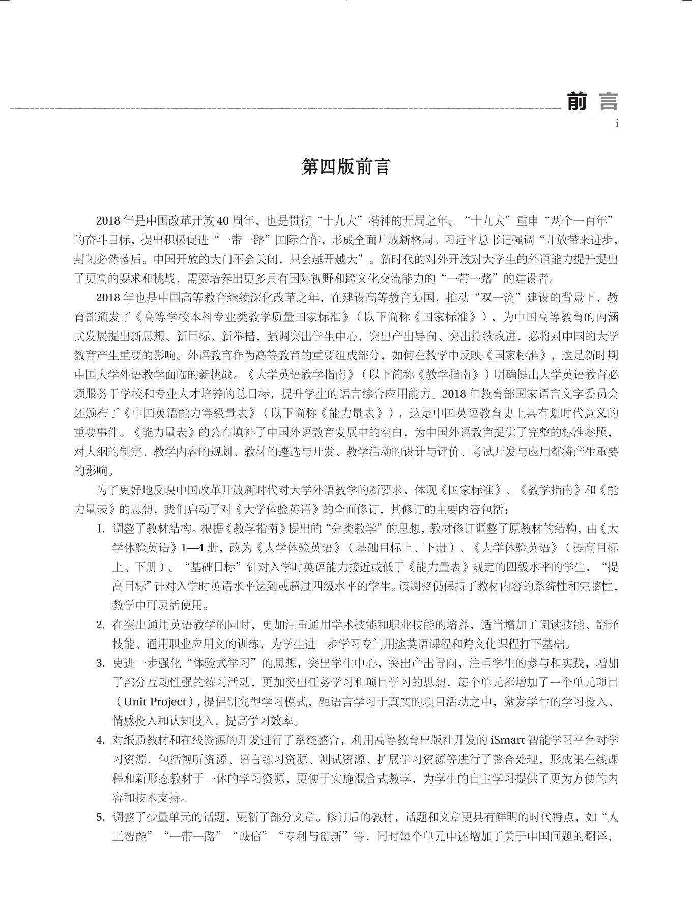 本书为大学体验英语综合教程(第四版)(提高目标·上册)的教学参考书,与教材配套使用。教材按照最新《大学英语教学指南》的要求编写,以培养学生的英语综合应用能力为目标,特别突出和加强了听说与交流能力的训练与培养。全书分8个单元,话题内容丰富,涉及当代青年日常生活的方方面面,如科技发展、环境保护、社会问题、终身教育等。每个单元共5个模块,分别进行听、说、读、写、译的综合训练和跨文化交流项目训练,帮助学生提高英语综合应用能力和跨文化交际能力。