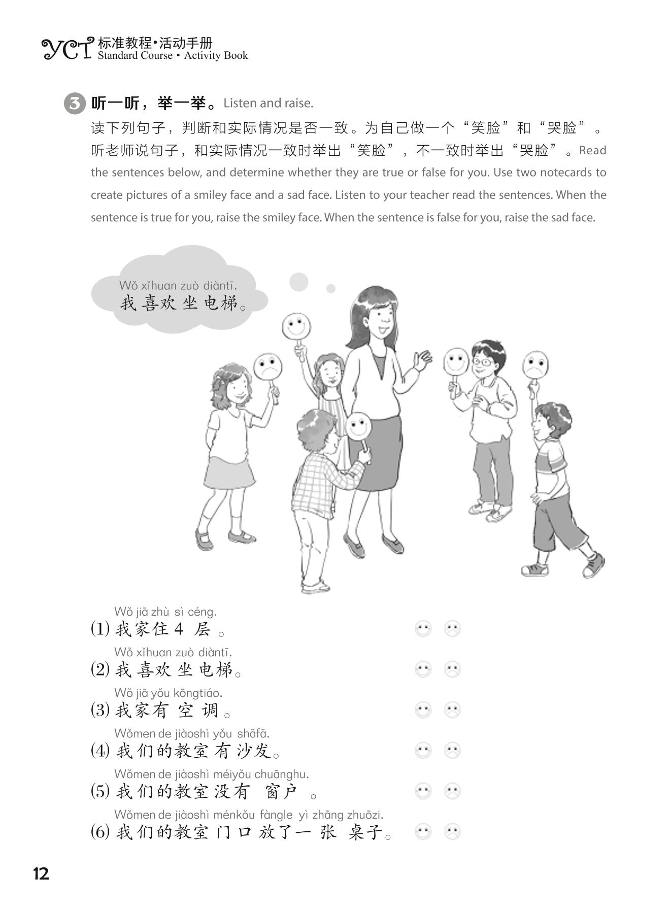 为鼓励汉语非第一语言的中小学生学习汉语,培养、提高他们的汉语能力,自2004年以来,中国国家汉办组织中外汉语教学、语言学、心理学和教育测量学等领域的专家,在充分调查、了解海外中小学实际汉语教学情况的基础上,开发了新中小学生汉语考试(YCT)。 每年参加YCT考试的考生达5万多人次,但尚没有一套完全符合YCT大纲和考试的教材,《YCT标准教程》将填补这一空白。一、编写理念:考教结合。教:紧扣大纲、贴近生活、寓教于乐,考:模拟真题、随学随练。二、适用对象:海外汉语非第一语言的中小学生。此教程为通用型教材,稍微偏重欧美地区。三、教程构成:第一册对应YCT(一级),第二册对应YCT(二级),第三、四册对应YCT(三级),第五、六册对应YCT(四级)。四、每册和每课内容:(1)每册教材共12课,每课后面安排一个模拟测试,题型与真题完全相同。(2)每课内容:关键句、生词、课文、活动和练习、测试页等。 |