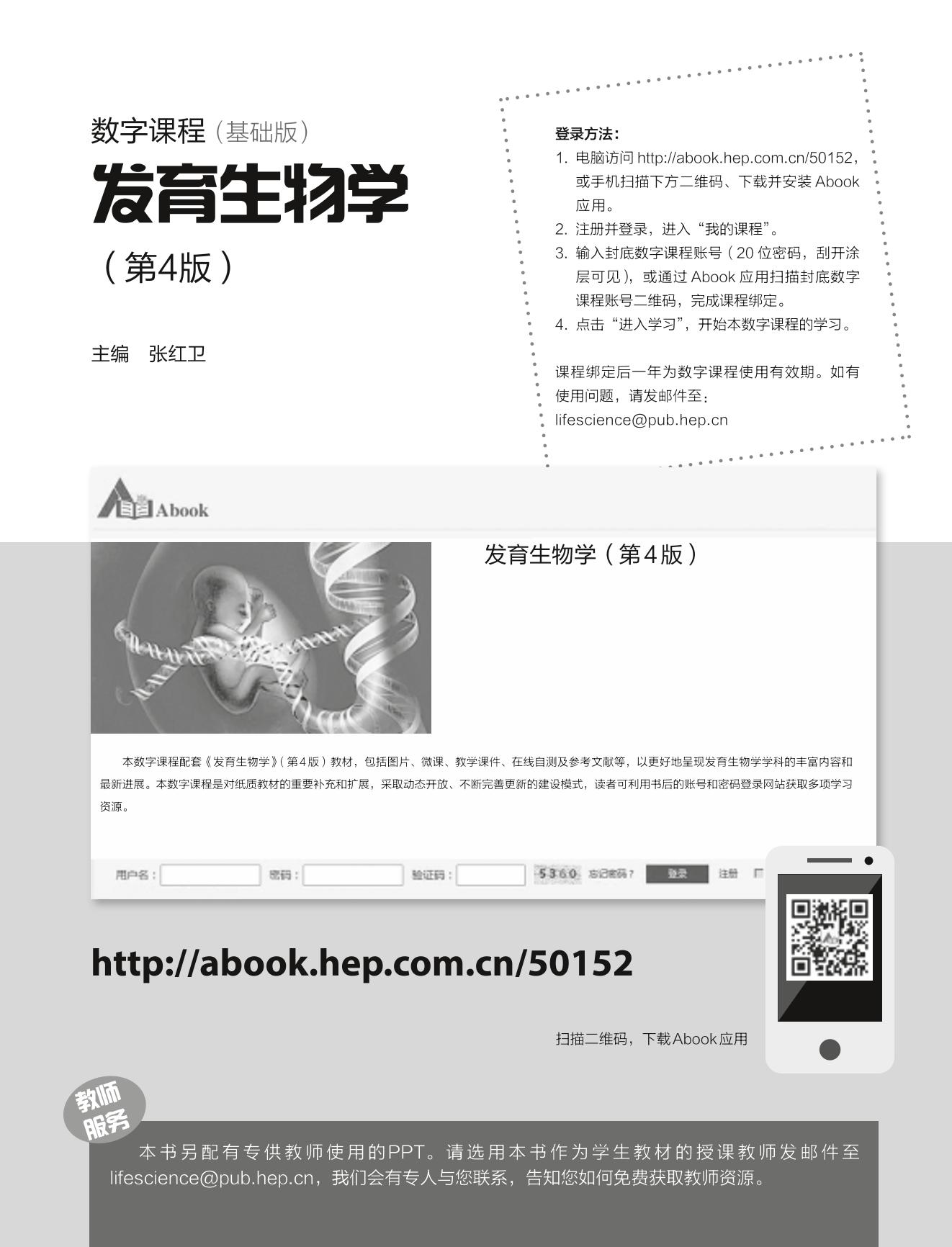 全书分为3 篇共25 章,全面、系统介绍了发育生物学的基础知识和基本理论,以及发育生物学的最新研究进展。第一篇“发育生物学基础”,讲述细胞命运的决定、细胞分化的分子机制、发育中的信号转导与网络调控、发育生物学模式生物、发育生物学研究技术等内容。第二篇“动物胚胎发育”,介绍从生殖细胞发生开始的整个动物胚胎发育和器官形成等发育事件及其调控原理。第三篇“发育生物学其他研究领域”,主要介绍干细胞生物学、发育机制的进化、发育可塑性与共生、植物的生长发育及发育生物学与癌症等内容。 第4 版配套建设数字课程(http://abook.hep.com.cn/50152)涵盖与纸质教材密切配合的微课、教学课件、在线自测及参考文献等内容,是纸质教材的拓展和补充。 本书可作为高等学校生命科学类专业本科生发育生物学课程教材,也可作为发育生物学、细胞生物学、遗传学、医学、水产学科等相关专业研究生有关课程教学的主要参考书。 |