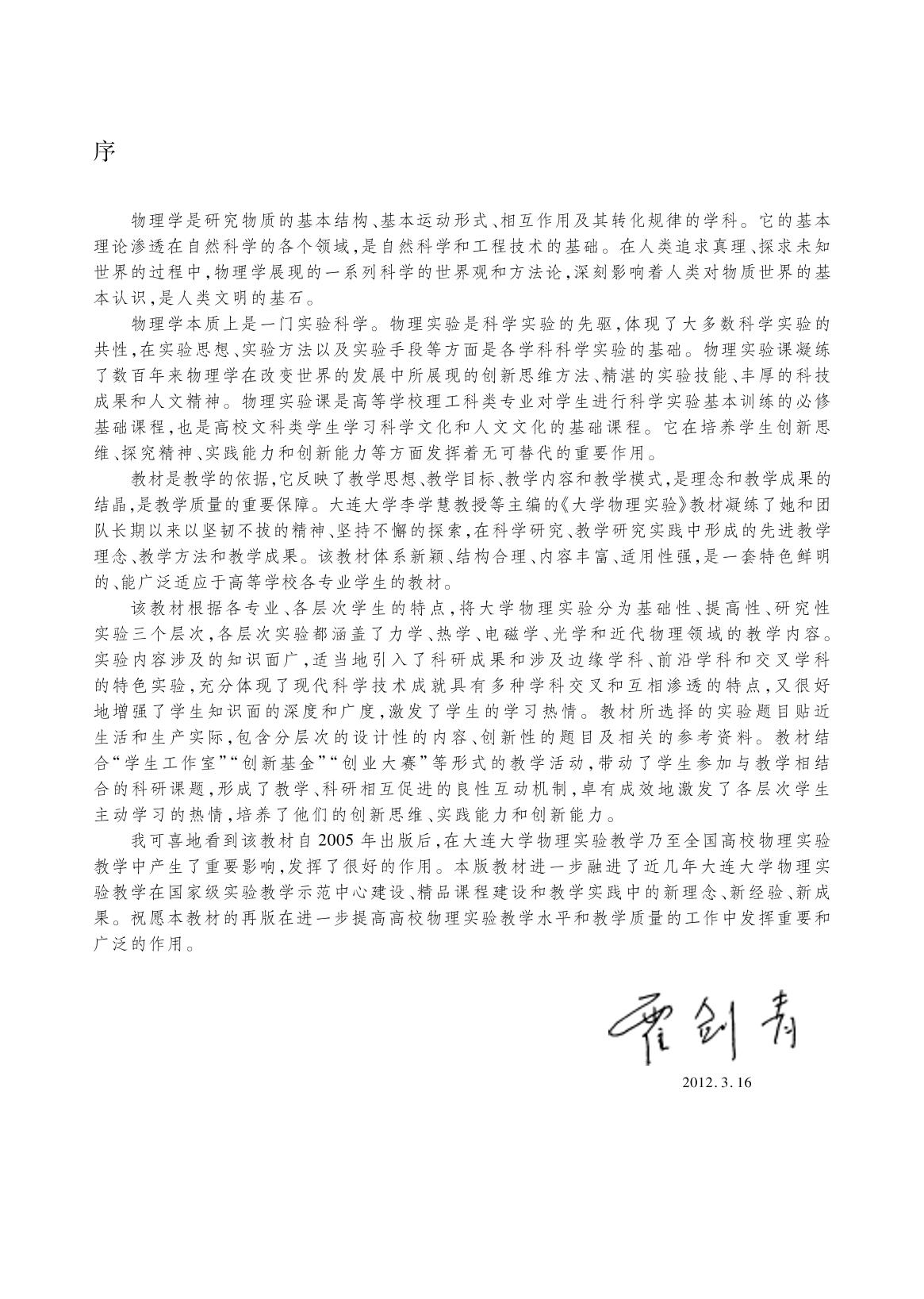 本书第一版是普通高等教育“十五”国家级规划教材,第二版是在物理实验课程教学改革经验的基础上,根据教育部高等学校物理学与天文学教学指导委员会编制的《理工科类大学物理实验课程教学基本要求》(2010年版)修订而成的,第三、第四版是在本书被评为“十二五”普通高等教育本科国家级规划教材后,根据学科的发展进行了完善。全书分五章。第一章“绪论”介绍了物理实验课程的教学培养目标、教学安排及物理测量中应注意的原则和事项,还介绍了基本物理实验方法的分类及在物理测量中的应用。第二章介绍了测量不确定度的评定与表达方法。第三章、第四章和第五章分别编入了基础性实验、提高性实验和研究性实验共71项,其中第五章还阐述了“课程论文的写作要求”。 本书可作为普通高等学校理、工、农、林、医、药各专业的大学物理实验教材,也可作为相关专业技术人员和其他有关人员的参考书。 |
