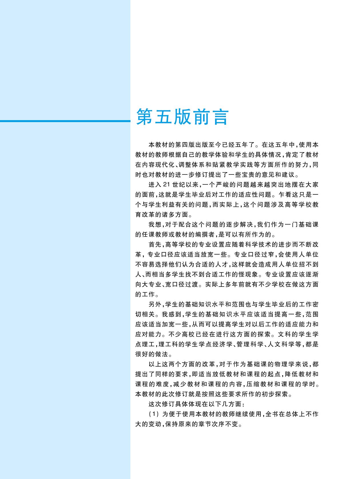 本书第二版是“面向21世纪课程教材”,第三版是普通高等教育“十一五”国家级规划教材,第四版是“十二五”普通高等教育本科国家级规划教材。以本书第二版为主讲教材的“物理学”课程被评为2004年度国家精品课程。本书根据教育部高等学校物理学与天文学教学指导委员会编制的《理工科类大学物理课程教学基本要求》(2010年版),从学科自身的发展、要求和特点出发,将近代物理的基本内容融入教材中,使物理学近代发展的新成果与物理学基本原理有机地结合起来。同时,为便于教学,本书保持了原教材阐述严谨、深入浅出、紧贴教学实践和符合教学规律等特点,并适当降低了课程的难度、减少了学时。与本书配套的有《物理学学习指导书》《物理学电子教案》及在线开放课程等。全书共计20章,分上、下两卷出版,本书是上卷。 本书可作为综合性大学、师范大学和工科院校的理工科非物理学类专业120~140学时基础物理学课程的教材使用,也可供其他高等学校的相关专业选用,还可供中学物理教师进修、自学使用。 |