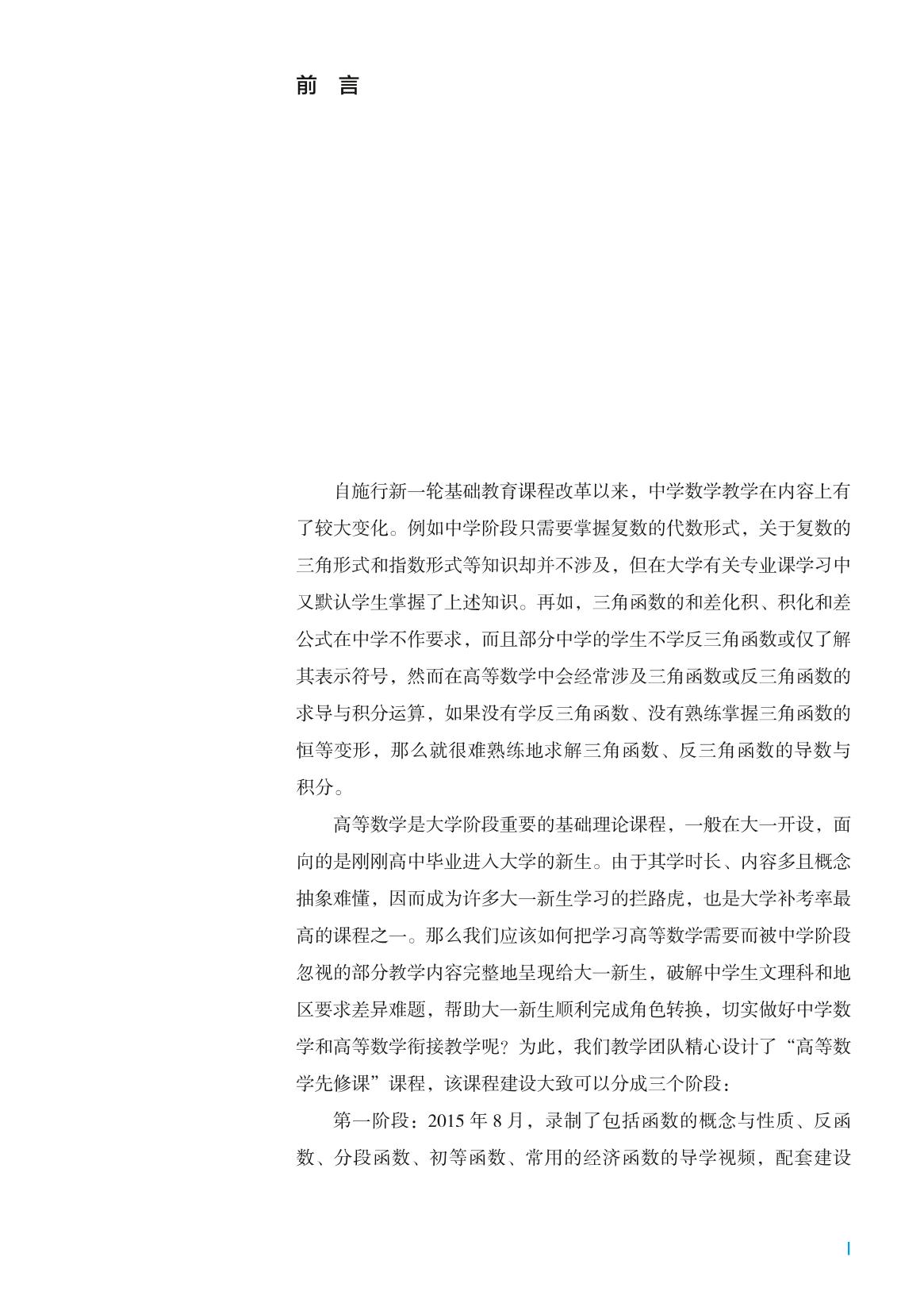 《高等数学先修课》是高等数学的预修教材,它衔接了中学数学和大学数学的内容。本书共十章,内容包括函数的概念和性质、反函数、分段函数、初等函数、常用的经济函数、曲线的极坐标方程与参数方程、数系的扩充与复数的引入、排列与组合、行列式、高等数学思想及方法。本书配套建设了数字化资源,包括微视频、自测题、阅读材料、讨论题参考答案和部分习题参考答案等,有助于提升课程学习效果,便于学生自主学习。 本书是与中国大学MOOC 上西南财经大学朱文莉教授等主讲的“高等数学先修课”慕课配套使用的教材,也可作为少数民族预科班数学教学参考用书,还可供普通高等学校、高等职业技术学院学生学习高等数学课程之前自学使用。 |