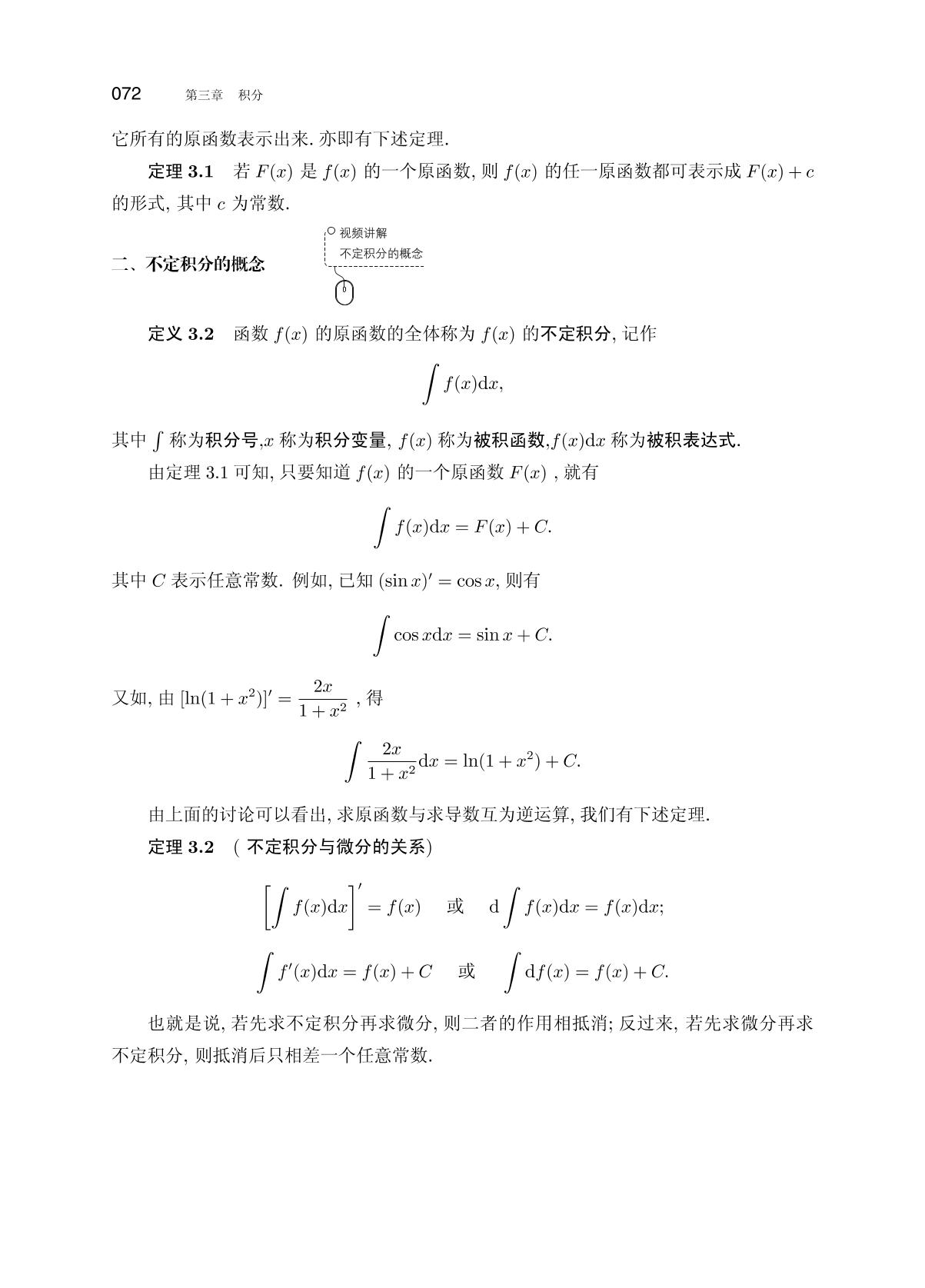 x3.1 不定积分的概念与性质