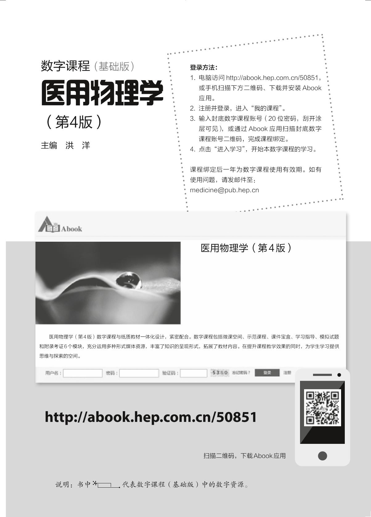 本书是全国高等学校“十三五”医学规划教材之一,由17 所高等医学院校的专家、教授共同编写,体现了新的教育理念和教学模式。为适应现代化数字课程的发展趋势和优势,以及全国医学院校物理学教学课时数一再压缩的现实,本书在前三版的基础上,采用纸质教材结合数字课程的模式出版。纸质教材在保证完整的物理学框架前提下,作了进一步的精简和调整。数字课程共设置了6 个模块,包括微课空间、示范课程、课件宝盒、学习指导、模拟试题和附录考证。纸质教材与数字课程相结合,有利于教学资源更有效、更科学地应用,在内容上注重物理学与医学实践相结合,以使其在培养学生科学思维方法和创造能力方面发挥更大的作用。 本书可作为高等学校医学各专业本科生物理学基础课程教材,也可供临床医务工作者和生命科学研究人员参考。 |