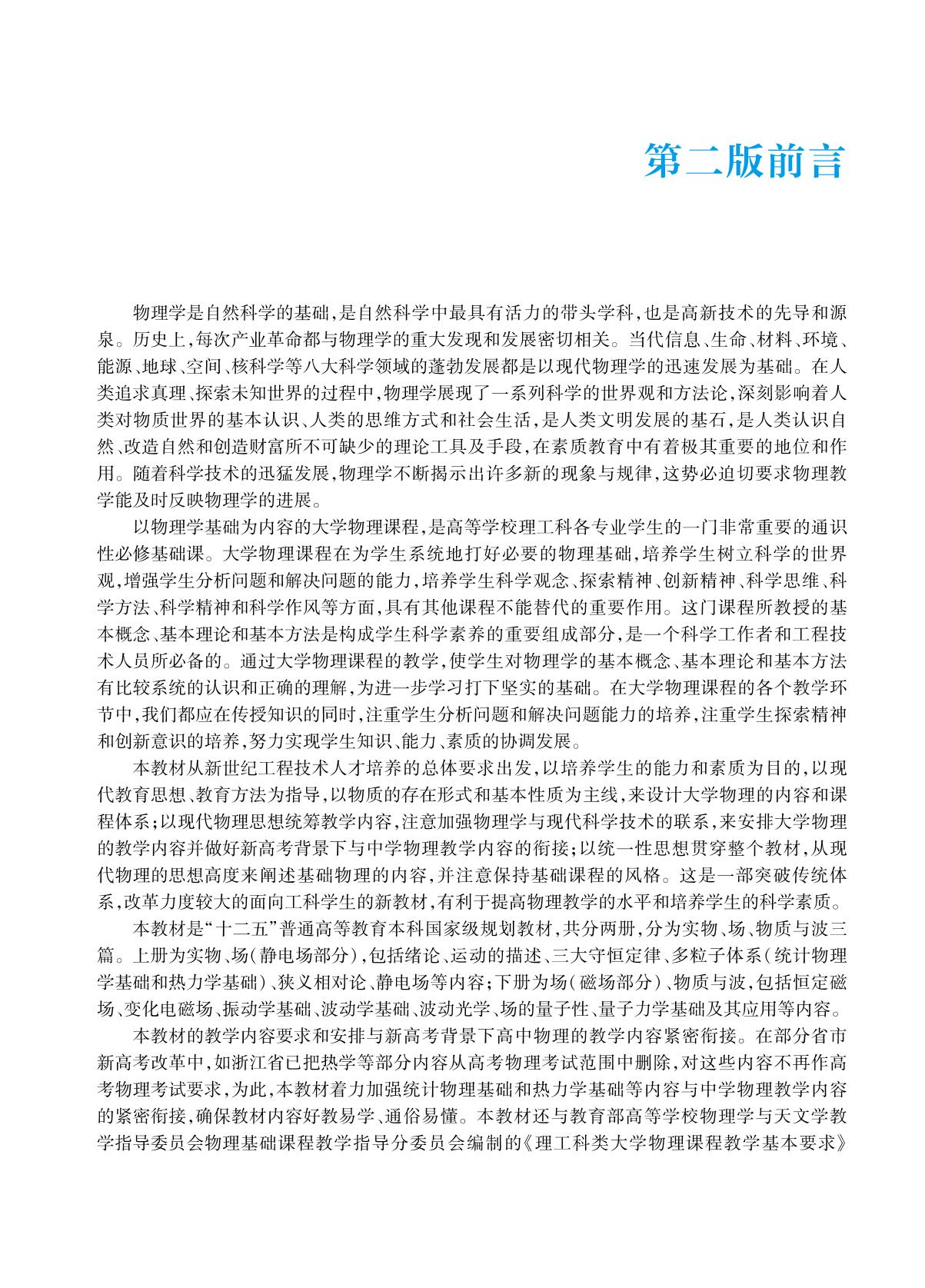 本书是“十二五”普通高等教育本科国家级规划教材。本书从新世纪工程技术人才培养的总体要求出发,以培养学生的能力和素质为目的,以现代教育思想、教育方法为指导,以物质的存在形式和基本性质为主线,来设计大学物理的内容和课程体系;以现代物理思想统筹教学内容,做好新高考背景下与中学物理教学内容的衔接,注意加强物理学与现代科学技术的联系;以统一性思想贯穿整个教材,从现代物理的思想高度来阐述基础物理的内容,并注意保持基础课程的风格。这是一部突破传统体系,改革力度较大的面向理工科学生的新教材,有利于提高物理教学的水平和培养学生的科学素质。 本书可作为高等学校理科非物理学专业和工科类各专业的大学物理课程教材,也可供其他读者参考。 |