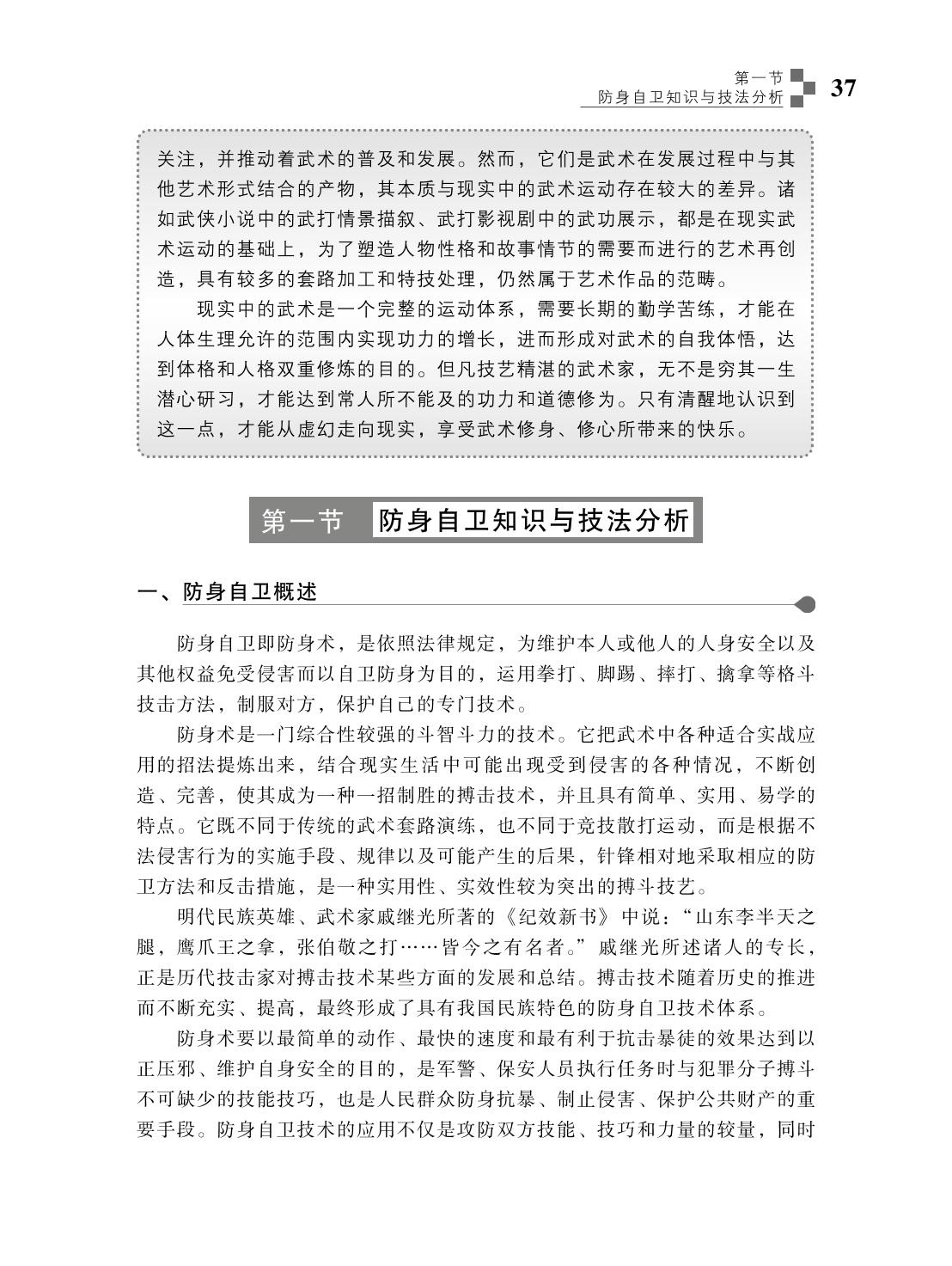 本书为教育部“十二五”普通高等教育本科国家级规划教材,也是普通高等学校体育教育专业主干课程教材之一。作者在第二版的基础上,补充了近年来我国武术运动理论和技术发展的最新成果,体现了学校武术教育教学改革的发展趋势,突出了教材的先进性、科学性、思想性和示范性等特点。本教材共分9章,主要内容包括武术概述、武术与传统文化、武术技法分析、武术自学自练与套路创编、武术教学、武术徒手基本动作与方法、太极拳、武术主要器械技法分析、武术评判与鉴赏等内容。教材为新形态教材,配有相关技术动作视频。本教材可作为普通高等院校体育专业本科、专科教材,也适用于函授及职业教育技术学院体育专业教学用书。此外,还可作为在职体育教师的培训用书和教学参考书。 |