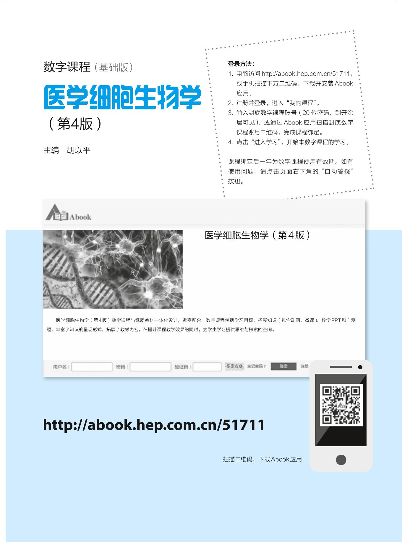 本教材是“十二五”普通高等教育本科国家级规划教材,由来自国内19 所院校的教师和专家共同完成。 本教材基于我国当今医学教育的特点和医学生知识结构的需求,以细胞在个体发育过程中的生物学行为为主线,系统地介绍了医学细胞生物学的基本理论、基本知识和基本技术,并从宏观和发展的视角,引入了时空动态概念、数量概念和系统概念。本教材共4 篇19 章,分为概述、细胞的结构及其功能、细胞的生命现象及其发生与延续和细胞与生物工程。配套数字课程(基础版),包括内容丰富的拓展知识、教学PPT和自测题。 本教材供临床、基础、预防、护理、口腔、检验、药学等专业用,也可供医学、药学及生物学相关专业的研究生、教师、科研人员、药师、临床医生,以及医师执业考试者使用。 |
