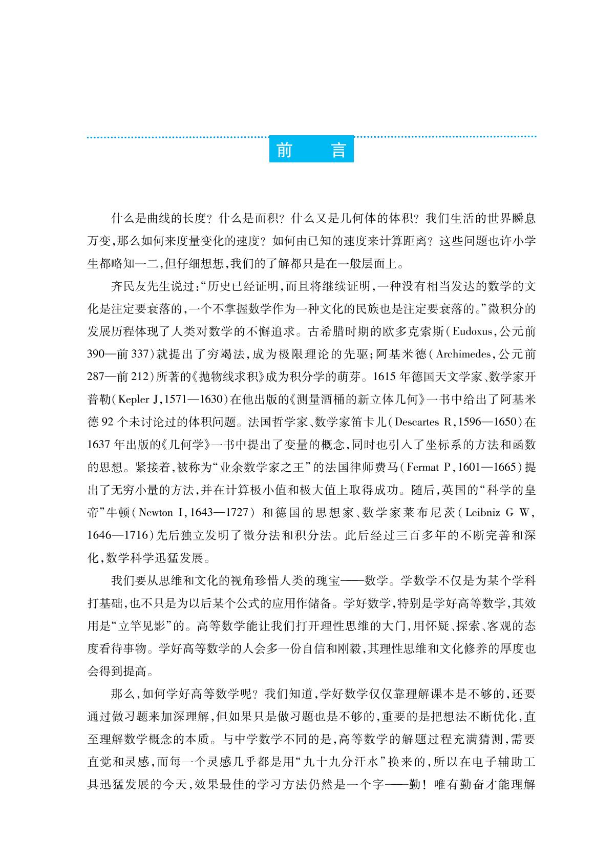 本书是作者在苏州大学使用多年的高等数学讲义的基础上修改编写而成,力图通过浅显易懂的语言和简单的方式揭示深刻的数学思想与方法。全书分为上、下两册。上册内容包括函数与极限、导数与微分、中值定理和导数的应用、不定积分、定积分及其应用,下册内容包括向量与空间解析几何、多元函数微分法及其应用、重积分、曲线积分与曲面积分、无穷级数和常微分方程。本书配套建设了数字课程,包含拓展阅读、自测题、思考题解答和部分习题解答提示等资源。 本书可作为高等学校非数学类专业的高等数学教材,也可供社会学习者学习高等数学或考研参考使用。 |