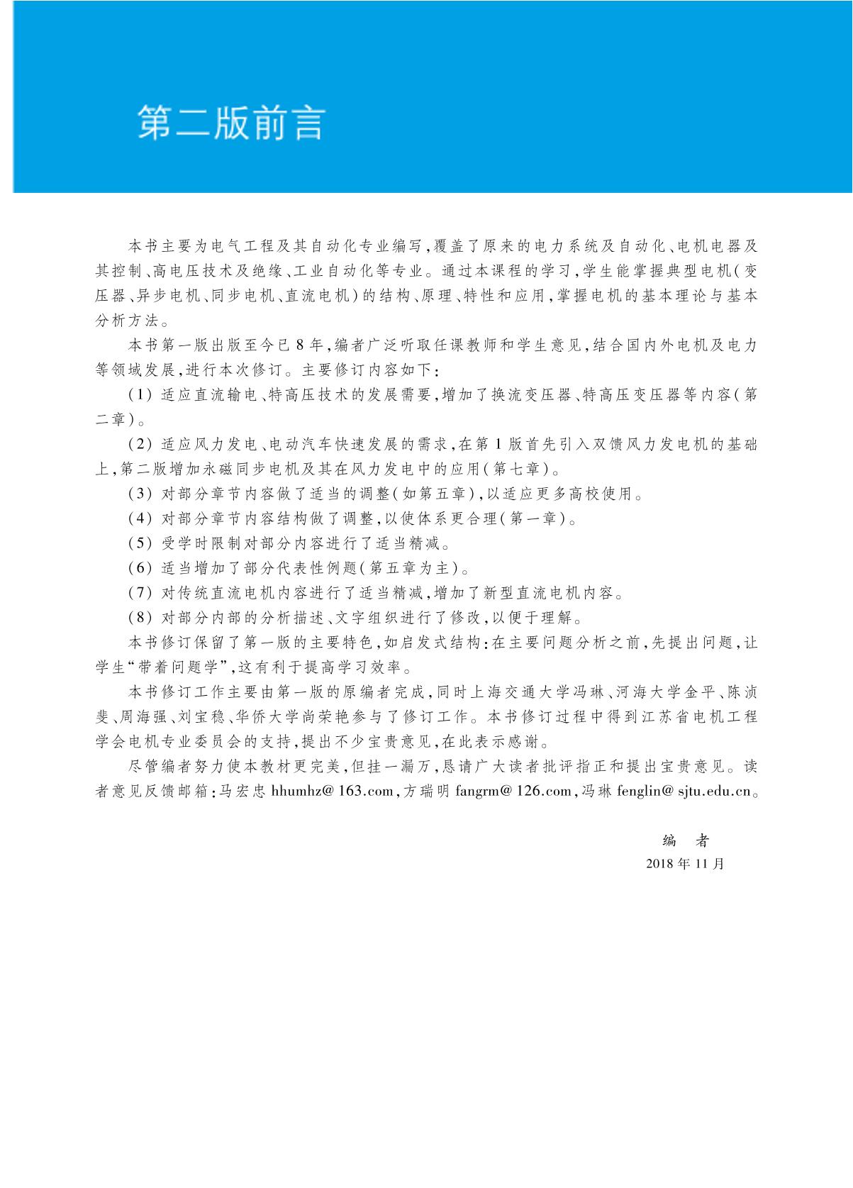 全书共分8章,主要介绍电气工程中常用的变压器、异步电机、同步电机和直流电机的基本结构、基本原理、特性和应用,以及电机的基本理论与基本分析方法。其中第一章绪论主要介绍与电机相关的磁的知识,第二章变压器,第三章交流电机基本理论,第四章异步电机分析,第五章同步电机分析,第七章对其他电机进行简要介绍,第八章MATLAB在电机分析计算中的应用。每一章前有简短提要,帮助学生了解本章的概况;后有详细小结,对本章讲述的主要概念、分析方法等进行归纳和提炼。教材采用启发式学习体系,先提出问题,让学生“带着问题学”。考虑风力发电专业的需要,本书增加双馈电机及其在风力发电中的应用、永磁电机及其在风力发电中的应用等内容。书中部分内容用“*”标出,供相关专业选讲。 本书可作普通高等学校和成人高等学校电气工程学科相关专业电机学课程的教材或参考书,也可供有关科技人员学习参考。为了便于读者更好地理解和掌握电机学的主要内容,提高分析和解决问题的能力,本书配有教学指导教材《电机学学习指导与习题解答》和配套PPT课件。 本书为“十二五”江苏省高等学校重点教材(编号:2015-1-106)。 |
