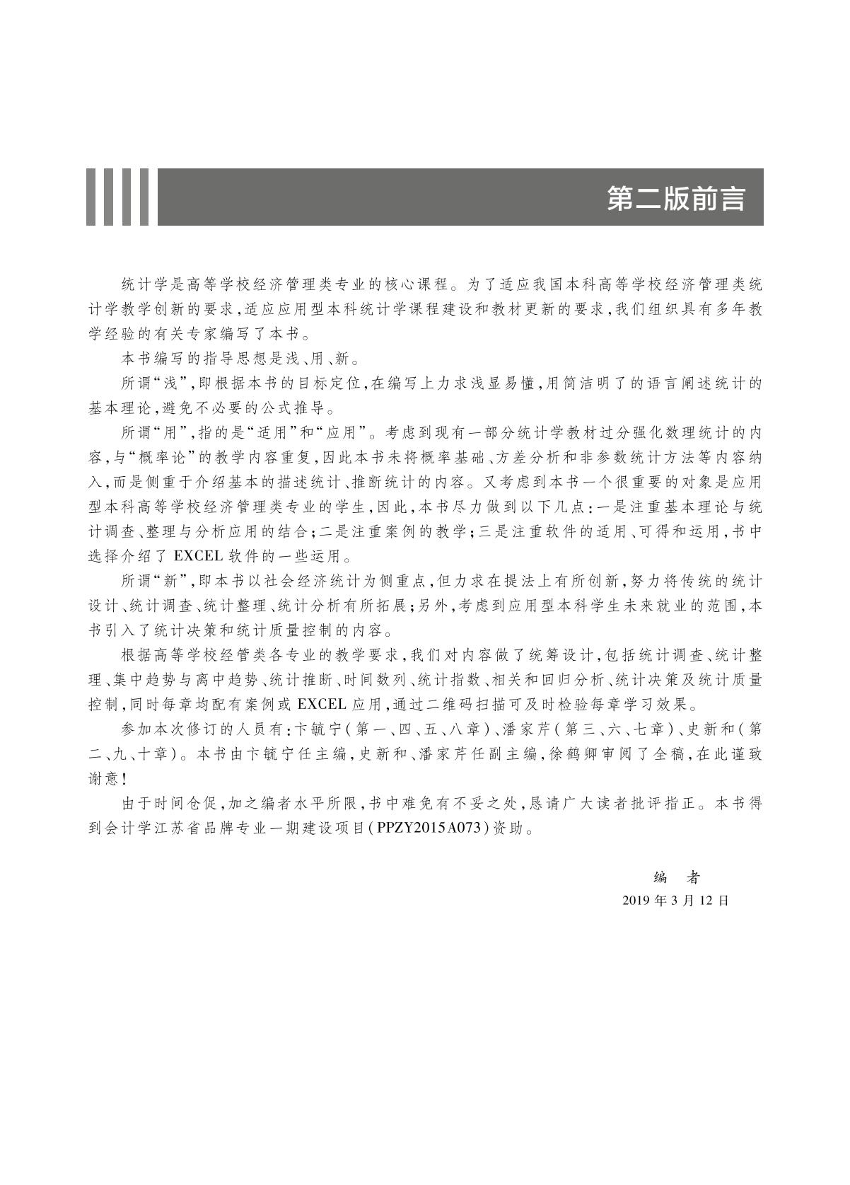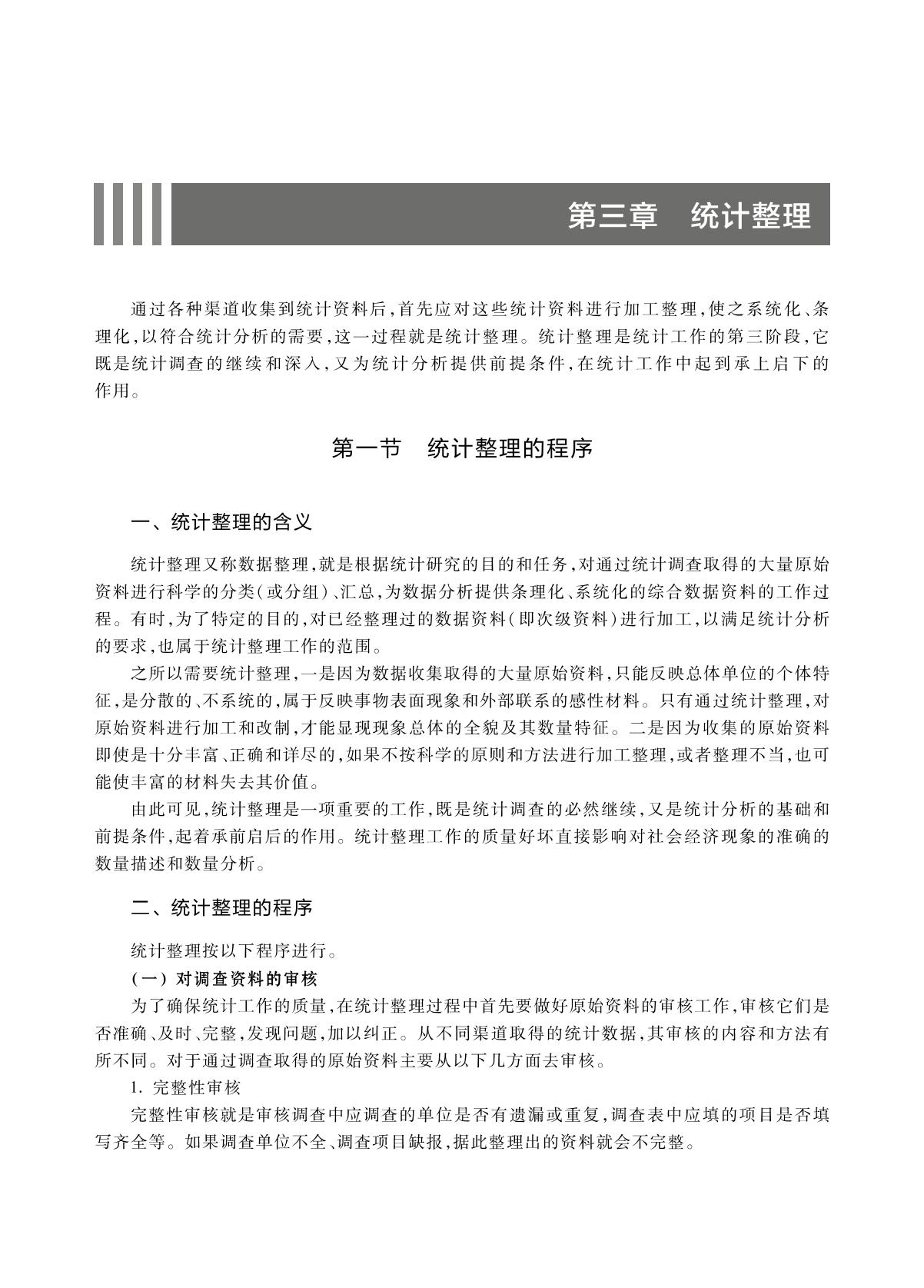 统计学是高等学校经济管理类专业的核心课程。 本书系统地阐述了统计的基本理论和方法,全书分为10章,具体内容包括绪论、统计调查、统计整理、集中趋势与离中趋势、统计推断、时间数列、统计指数、相关和回归分析、统计决策和统计质量控制。本书内容简明扼要,深入浅出,易学易懂,注重应用,每章后均配有思考与练习,并配有案例或EXCEL应用。读者通过扫描章后“测一测”二维码,可及时检验本章的学习效果。 本书可作为高等学校会计、金融、工商管理等非统计专业的教学用书,也可作为相关在职人员的培训用书。 |
