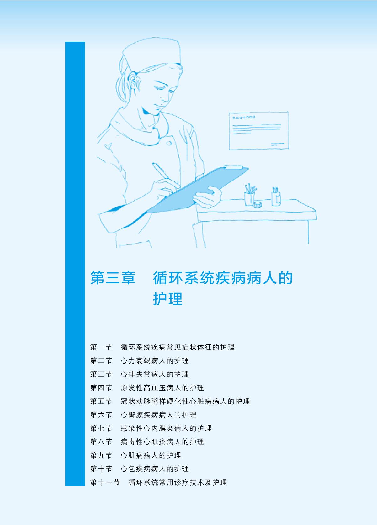 本书为高等职业教育新形态一体化教材。全书分为九章,第一章为绪论,第二至九章分别介绍了呼吸系统疾病、循环系统疾病、消化系统疾病、泌尿系统疾病、血液系统疾病、内分泌及代谢性疾病、风湿免疫系统疾病和神经系统疾病病人的护理。第二至九章每章第一节均为常见症状体征的护理,最后一节为本专科的“常用诊疗技术及护理”,中间为各系统的常见病、多发病病人的护理。每章节开始部分均有典型病例(或情境),通过问题导入,引导学生思考,导入教学内容。各疾病病人的护理部分,编写内容包括疾病概述、病人护理、健康教育三部分。“疾病概述”部分主要介绍本病的病因、临床表现、实验室及其他检查、治疗原则(包括主要治疗方法、用药),使学生建立疾病的整体印象。第二部分为“病人护理”,按照“护理程序”编写教学内容,要求学生逐步学会应用护理程序对病人进行护理,强化“整体护理”观;“健康教育”则强调疾病的预防与自我保健,体现“慢病管理”的重要性。在这三部分内容的编写中,适当设置问题,引导学生“问题探究”,以激发学生学习兴趣。重要知识点、技能点配有二维码微课,便于学生课前课后学习。每章内容后附有复习思考题,便于学生复习、强化课堂内容。 本书为高等职业教育护理专业应用型、技能型人才教学用书,也可作为相关专业人员职业培训、业务进修用书。 |
