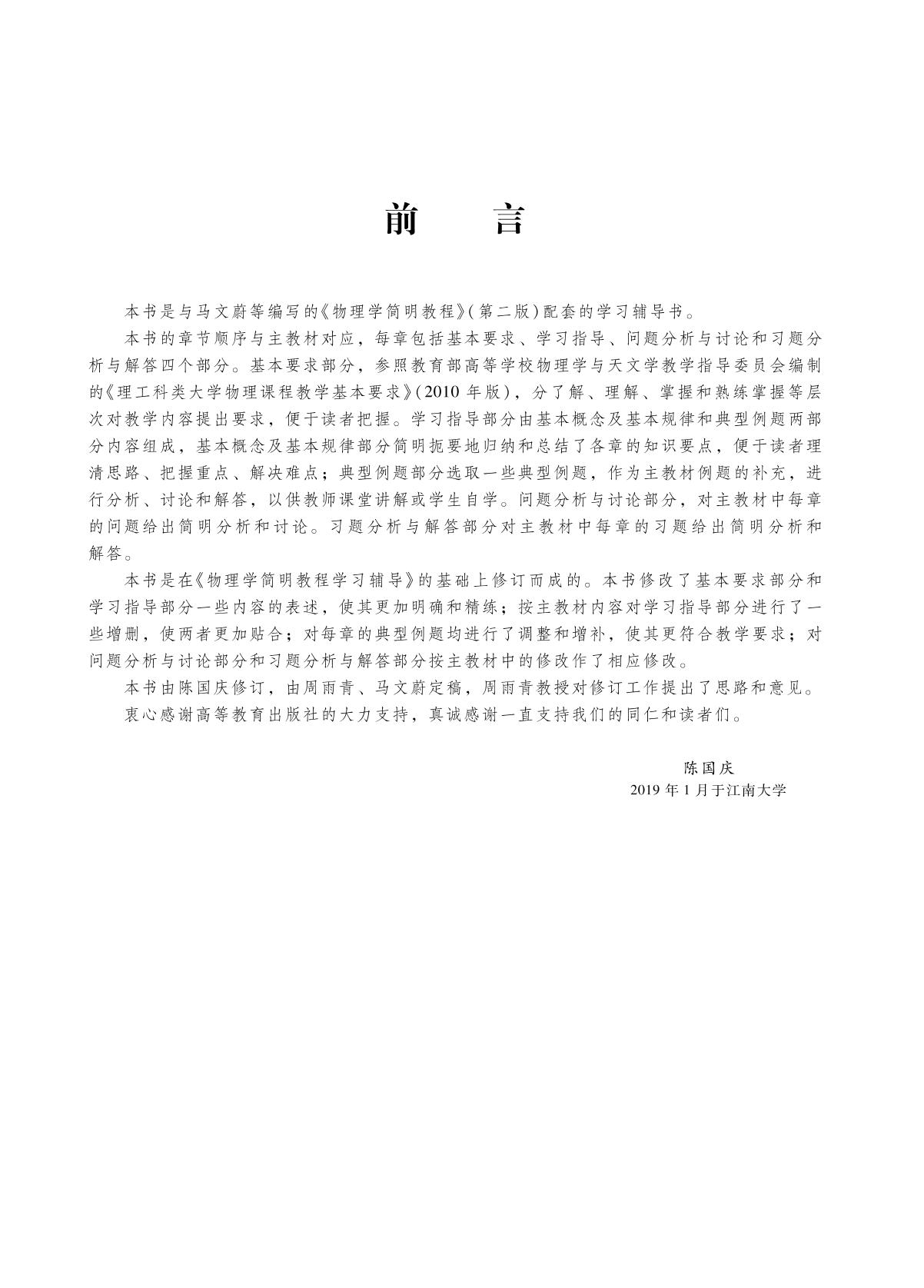 本书是在《物理学简明教程学习辅导》的基础上修订而成的。 本书与马文蔚等编写的《物理学简明教程》(第二版)配套。本书各章节顺序与主教材一致,每章分基本要求、学习指导、问题分析与讨论和习题分析与解答四个部分。每章均提出教学要求;归纳和总结知识要点,并补充典型例题,进行分析、讨论和解答;分析和讨论主教材中每章的问题;对主教材中每章的习题给出简明分析和解答。全书紧扣主教材,从教学实际出发,注重实用性。 本书适合以《物理学简明教程》(第二版)为教材的师生作为教学辅助用书,也可供其他读者自学时使用。 |
