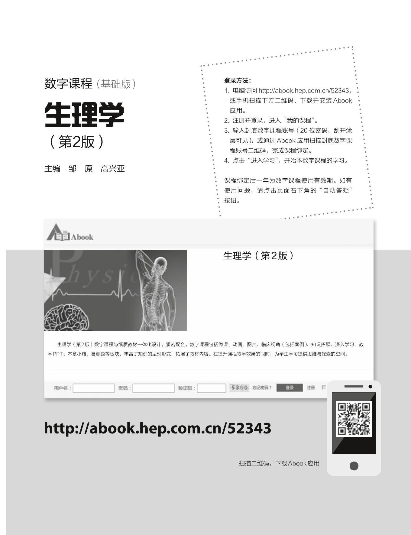 本书内容主要包括绪论、细胞的基本功能、血液、血液循环、呼吸、消化与吸收、能量代谢与体温、尿的生成和排出、感觉器官的功能、神经系统的功能、内分泌生理和生殖,内容编排上突出核心知识,注重知识运用,强调联系临床。全书纸质内容与数字化资源一体化设计,数字课程涵盖动画、图片、临床视角、知识拓展、深入学习、本章小结、自测题、教学PPT 等资源,利于学生自主学习,提升教学效果。 本书适用于高等学校临床、基础、预防、护理、检验、口腔、药学等专业学生,也是学生参加执业医师考试的必备书,还可供临床医务工作者和医学研究人员参考使用。 |
