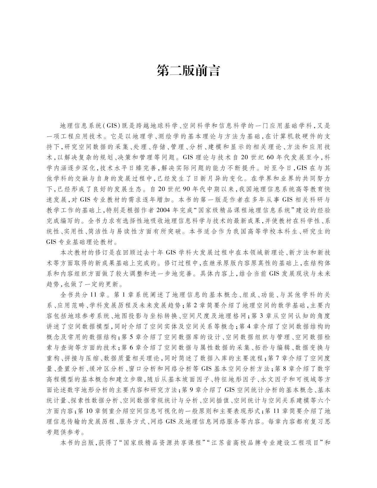 本书是在第一版基础上的修订版本,在基本理论?方法和技术上都有明显的更新和改进? 本书全面?系统地阐述了地理信息系统的基础理论与应用发展,内容包括地理信息系统基本概念?地理空间数学基础?空间数据模型?空间数据结构?空间数据组织与管理?空间数据采集与处理?空间数据查询与度量?GIS基本空间分析?数字地形分析?空间统计分析?地理信息可视化及地理信息传输与服务?书中配有专业术语和复习思考题? 为了方便读者使用和学习,本书还配有电子教案(PPT)?彩色图片等内容? 本书可作为高等学校地理类?测绘?环境?规划?地质?海洋?气象等专业的本科生和研究生教材,也可供相关方面的科研工作者阅读参考? |