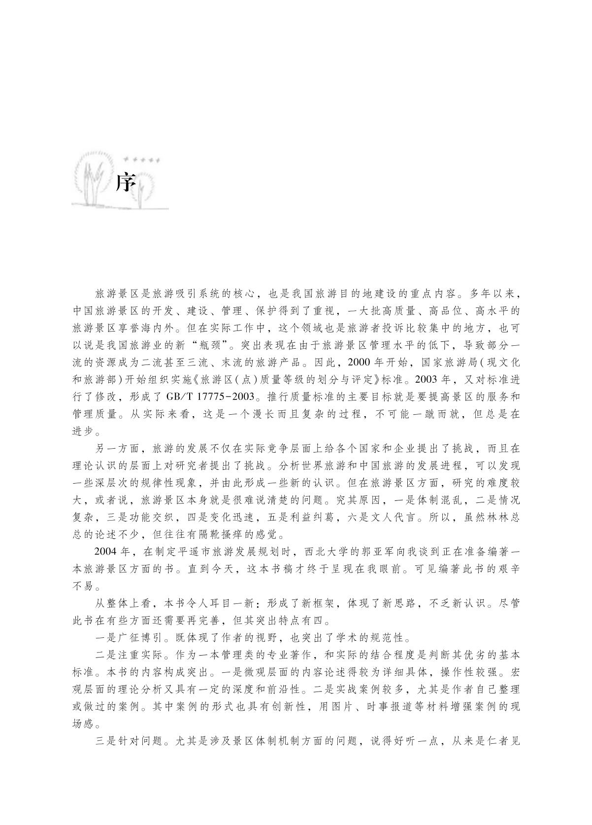 为了适应我国旅游高等教育的需求,本书在第二版的基础上,对内容进行了全面的修订。尤其对旅游景区承载量、旅游景区旅游者管理、旅游景区营销和国家公园体系等内容进行了大量的更新、改写,体现了新时代对旅游景区的要求。本书还增加了即测即评二维码链接和部分数字化资源,供广大师生选用。 本书既可供高等学校旅游管理专业学生使用,也可作为社会人员的参考用书。 |
