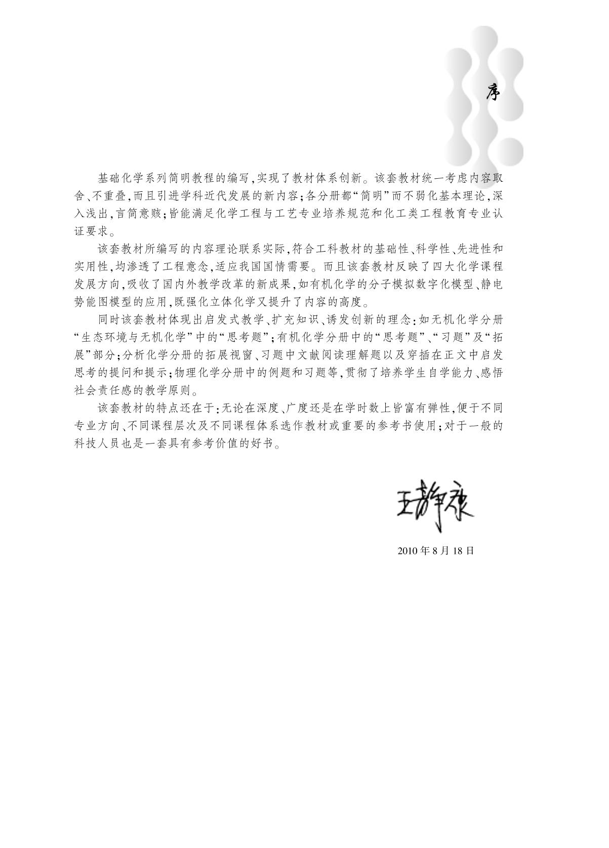 本书是“十二五”普通高等教育本科国家级规划教材。本书在保持第一版特点的基础上,更新了部分内容,增加了以数字化资源形式呈现的拓展学习、演示实验、动画演示、分子模型、静电势能图模型、化学家简介、诺贝尔奖获得者简介、教学课件、教学视频等内容。全书共15章,1—4章为有机化学基础理论和基础知识,5—8章为烃类化合物,包括饱和烃、不饱和烃、芳香烃、卤代烃,9—12章为含氧、含氮化合物,13—15章为天然化合物。章末设有习题,书后有索引。 本书可作为高等学校化学工程与工艺、制药工程、生物工程等有关专业的有机化学课程教材,也可供相关科研和工程技术人员参考使用。 |