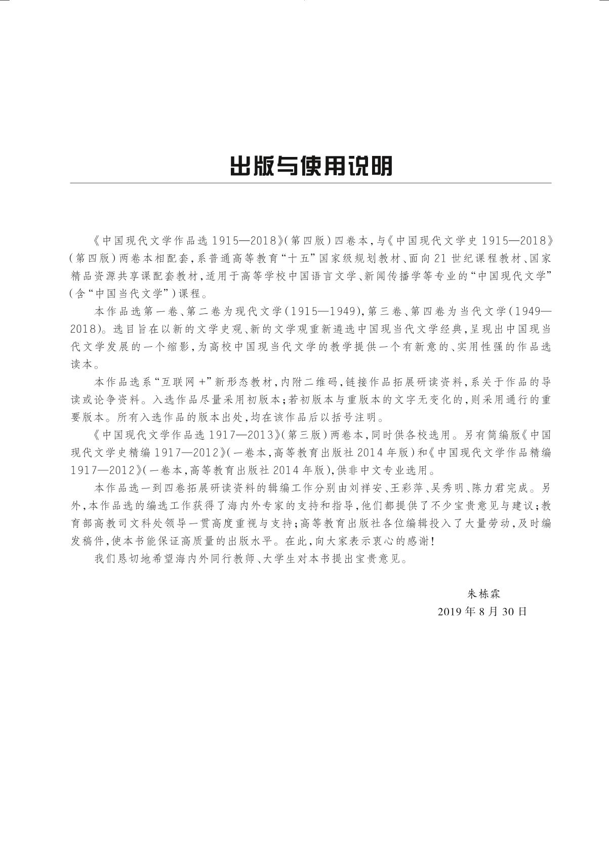 本书是《中国现代文学史1915—2018》(第四版)的配套四卷本作品选,为本专业最具全国性影响力的国家级教材之一。本作品选分为四卷,第一卷、第二卷为现代文学(1915—1949),第三卷、第四卷为当代文学(1949—2018),旨在以新的文学史观和文学观重新遴选中国现当代文学经典,以精练的选目呈现中国现当代文学发展的缩影,同时为高校现当代文学的教学提供一个有新意的、实用性强的作品选读本。 本书为“互联网+”新形态教材,内附二维码链接作品拓展研读资料。本书适合高等学校中国语言文学、新闻传播学等专业本、专科教学选用,也可供文学爱好者赏阅。 |
