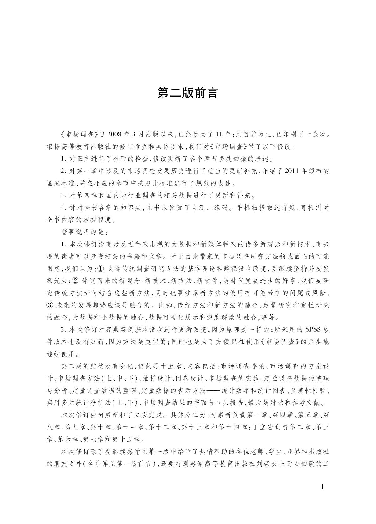 本书系统地介绍了市场调查的基础知识。在此基础上,按照调查设计、实施、数据整理和分析、报告撰写和发布的实际运作过程,由浅入深地介绍市场调查的常用方法。全书共十五章,内容包括:市场调查导论、市场调查的方案设计、市场调查方法、抽样设计、问卷设计、市场调查的实施、定性调查数据的整理与分析、定量调查数据的整理、定量数据的表示方法[CD2]统计数字和统计图表、显著性检验、实用多元统计分析法、市场调查结果的书面与口头报告。 本书既可作为管理类专业的教学或参考用书,也可作为统计学类、新闻传播学类和社会学类等专业的教学或参考用书,还可供相关从业人员使用。 针对全书各章的知识点,在书末设置了自测二维码。手机扫描做选择题,可检测对全书内容的掌握程度。 |