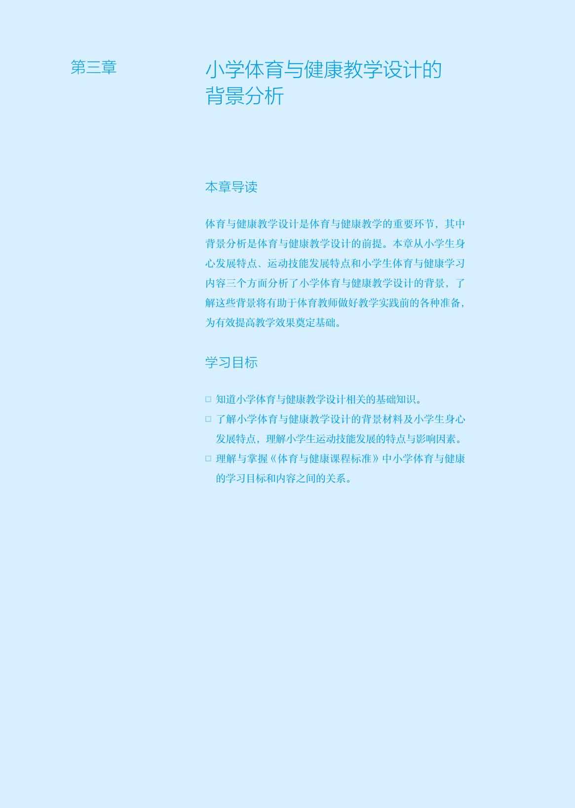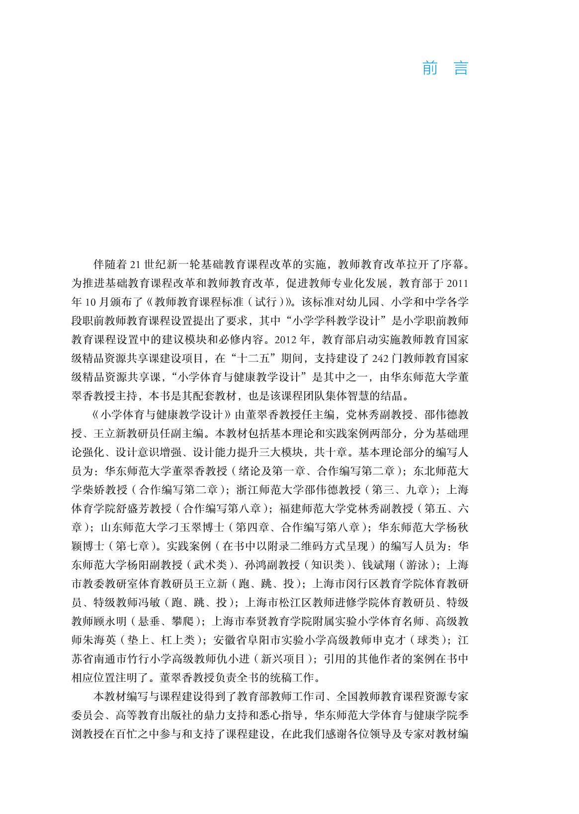 《小学体育与健康教学设计》在编写理念、内容体系、教材体例等方面均有创新,尤其是为了实现线上线下学习的有机结合,突出直观教学,强化本课程的实操性,本教科书通过二维码为学生提供了知识拓展、课堂教学视频以及水平一至水平三的教学设计案例。 |