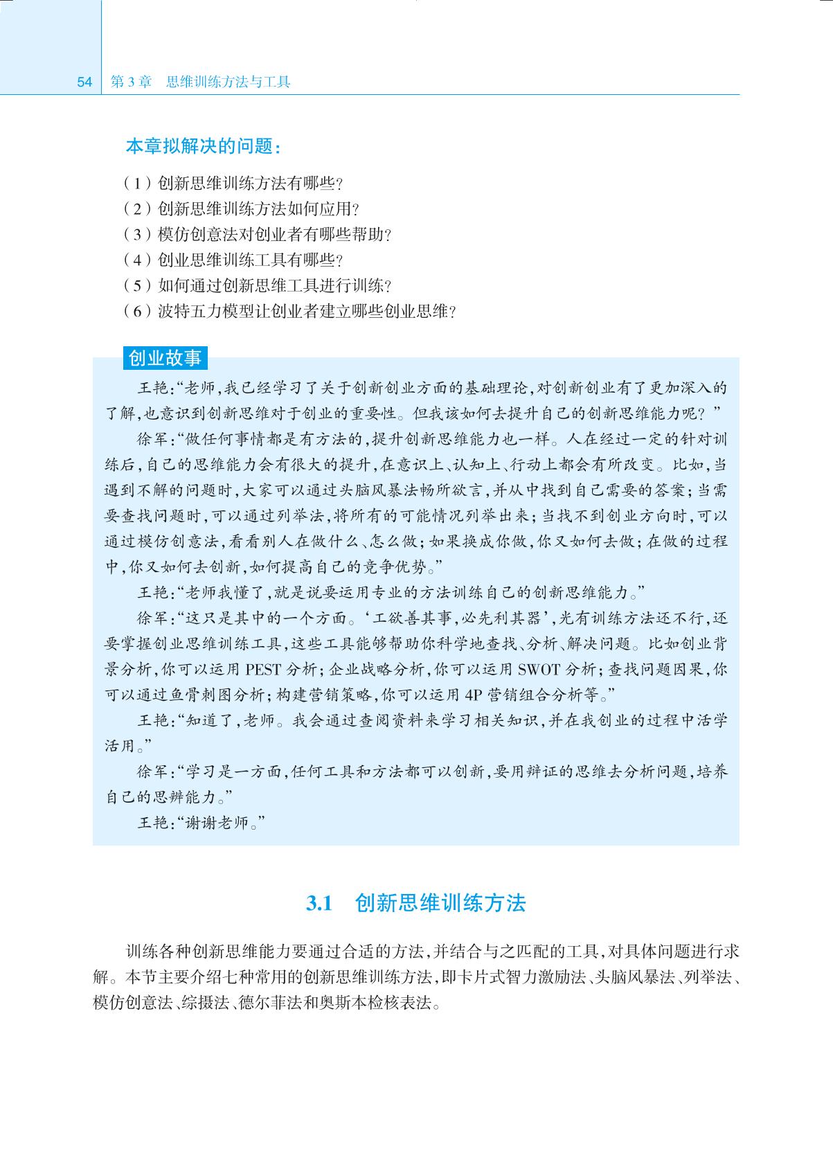 本书以拟解决的问题和“创业故事”为引题,独特新颖,符合学生的认知规律,使学生更容易接受创新创业知识。全书分为10章内容,知识体系完善,逻辑结构完整,强调创新创业知识和思维对当代大学生的重要性,旨在帮助大学生分析当前创新创业形势,认清创新创业现状。通过对创新与创业基础理论的学习,构建创新创业思维、树立创新创业意识、培养创新创业精神、提升创新创业能力。利用创新思维训练方法和工具,培养创业者、辨识创业机会;通过对创业项目、创业团队及其相关知识的系统学习,提高创业者整体素质和水平。通过创新创业文化与企业家精神教育,引导大学生养成工匠精神和家国情怀,为实现中华民族的伟大复兴担当大任。 本书既可以为想要创业的大学生指明方向,也可以为准备就业的大学生开拓视野;既可以作为大学生创新教育课程的教学用书,也可以作为教师的教辅用书,还可以作为初期创业者的参考书。 |