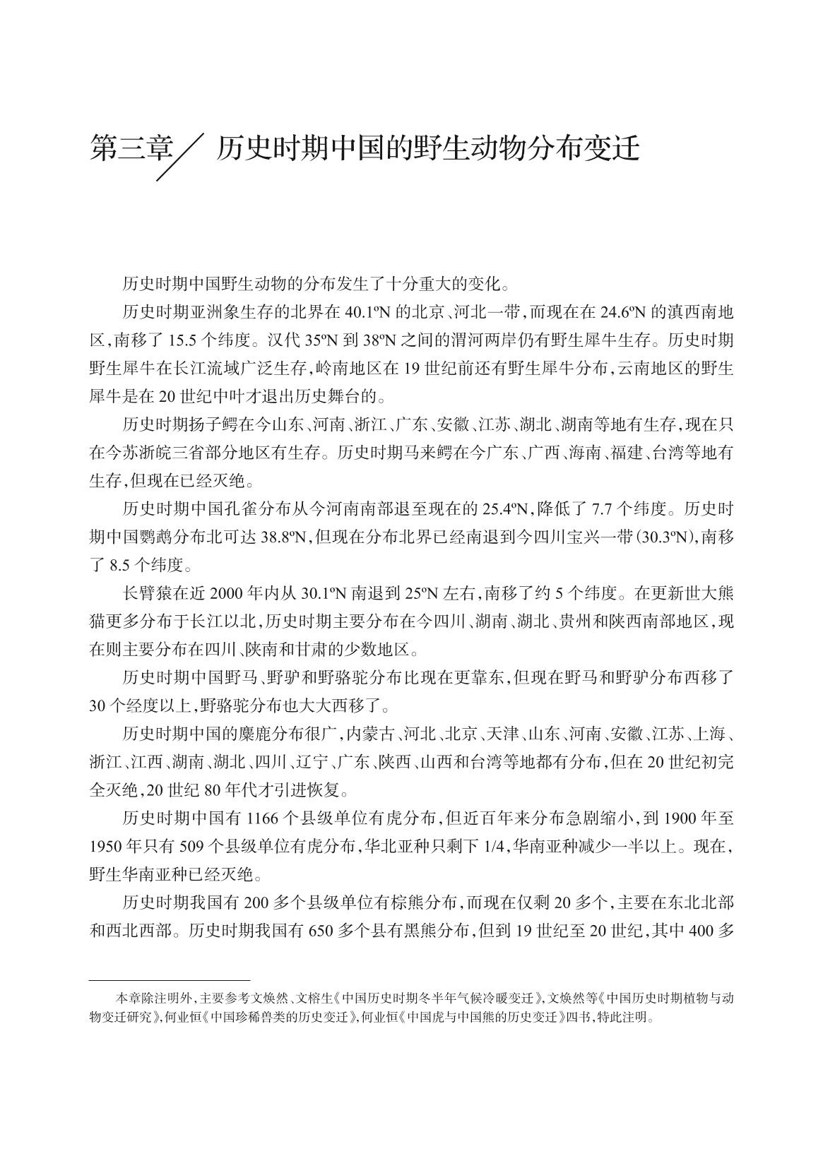 第三章 历史时期中国的野生动物分布变迁