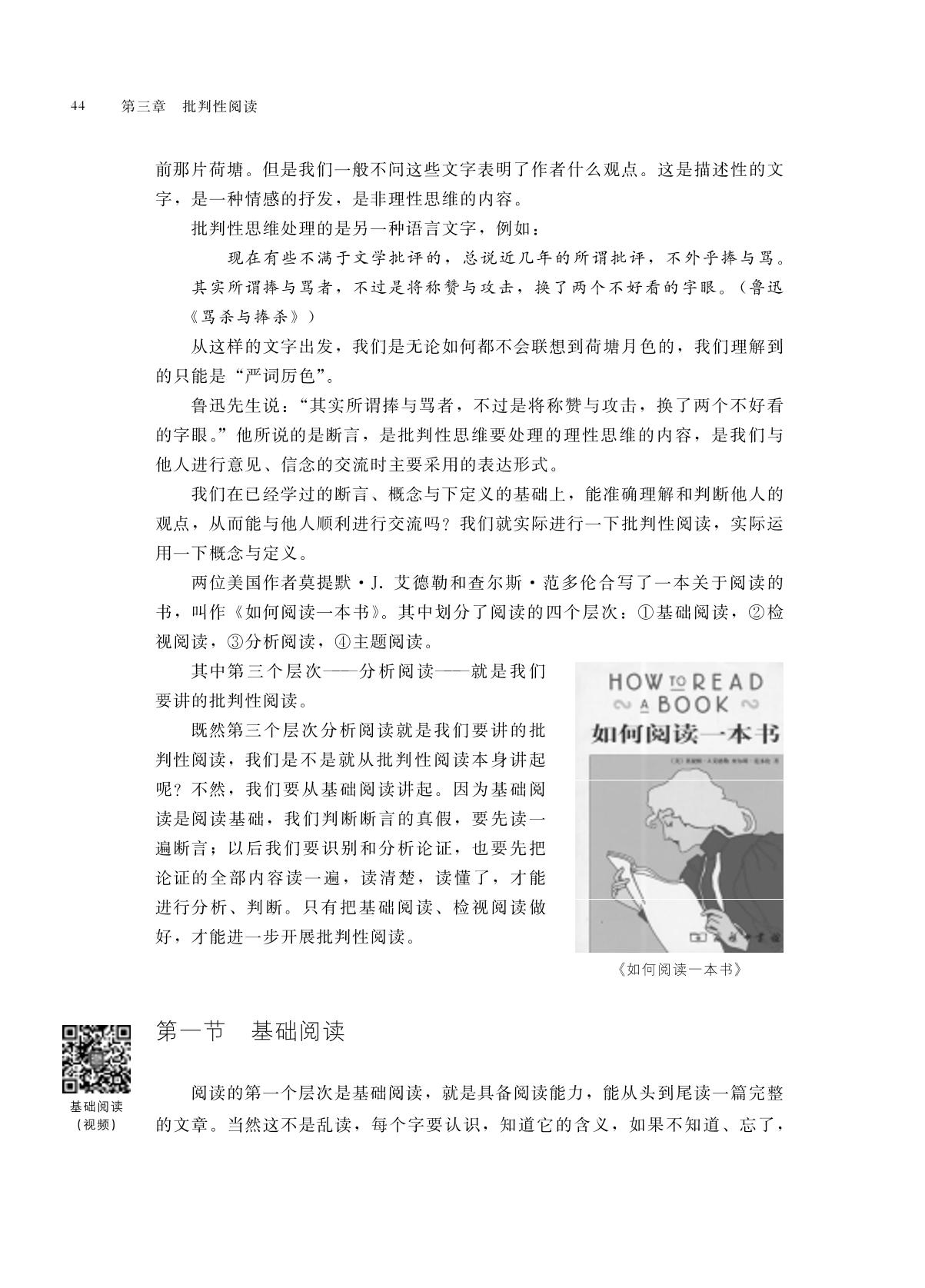 前辅文 绪论 第一章 知识与批判 第一节 理性思维与非理性思维 第二节 什么是批判 第二章 断言与澄清概念 第一节 断言:有所判断的话 第二节 概念与判断 第三节 断言表达含混 第四节 澄清概念 第三章 批判性阅读 第一节 基础阅读 第二节 检视阅读 第三节 分析阅读 第四节 主题阅读 第五节 读出失败,写出文献综述 第四章 论证与推理 第一节 导论 第二节 论证 第三节 论证及其结构总结 第四节 识别论证 第五节 论证方式 第六节 未表达前提 第五章 分析论证 第一节 分析论证概况 第二节 评论论证 第三节 分析和评论论证总结 第四节 科学家应用推理与论证 第六章 批判性写作 第一节 建构论证 第二节 论文及其写作 第三节 解决问题———批判性写作的目的 第四节 科学研究、科学交流及科学家的情报意识 第七章 情报与情报意识 第一节 情报之惑 第二节 情报是什么 第三节 情报活动的结构 第八章 情报的搜集、分析与生产 第一节 情报的搜集———情报源 第二节 情报的分析 第三节 情报的生产