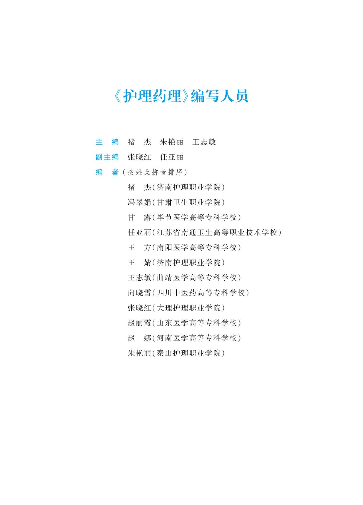 护理药理 褚杰 朱艳丽 王志敏 高等教育出版社