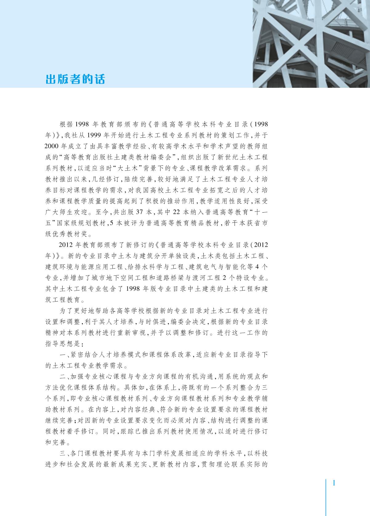 本书是 “十二五”普通高等教育本科国家级规划教材,同时是新世纪土木工程系列教材之一。 本书着重讲述钢结构的基本原理,包括钢结构的设计方法,钢结构的材料性能、连接和节点设计,以及各种基本构件的设计,并以单层厂房钢结构为例介绍了上述内容的具体应用。书中还介绍了钢结构的塑性设计方法和抗震设计特点,以及冷弯薄壁型钢结构设计原理的部分内容。书内附有例题和习题,并应用网络技术安排了部分动画和视频,方便读者学习。 本书内容丰富、系统,理论联系实际,可作为高等学校土木工程专业本科生教学用书,也可作为有关科研人员和工程设计人员的参考书。 |