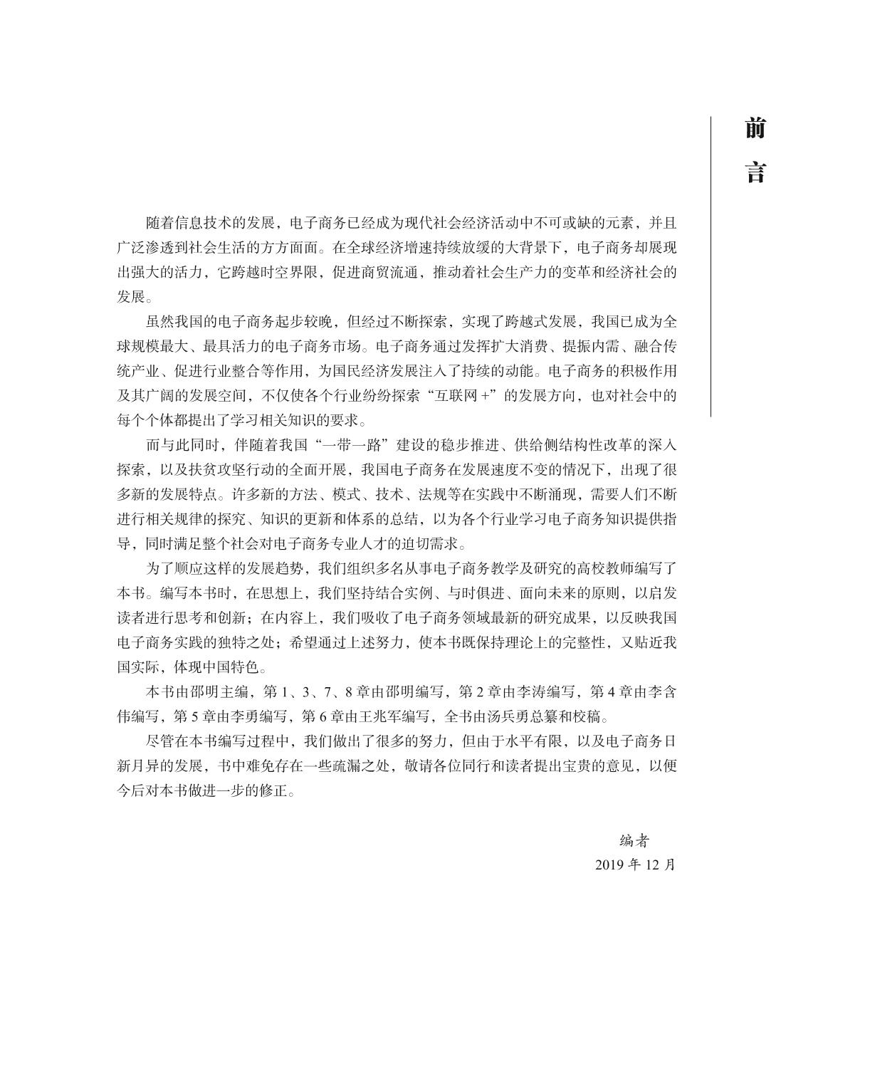本书从理论、应用和创新三个维度介绍了电子商务的相关知识。本书共分8 章,具体内容包括电子商务概述、电子商务技术基础、电子商务融合发展、网络营销、电子商务物流、电子商务支付、电子商务发展环境,以及电子商务创新展望。本书结构清晰,体系完整,深入浅出,注重理论联系实际。本书每章章首都有导入案例,使读者能够带着问题学习;章末再通过案例分析,帮助读者巩固相关知识。 本书既可以作为高等学校电子商务类专业,以及经济类、管理类、信息类等专业电子商务概论课程教材或教学参考书,还可以为企事业单位开展电子商务实践提供指导。 |