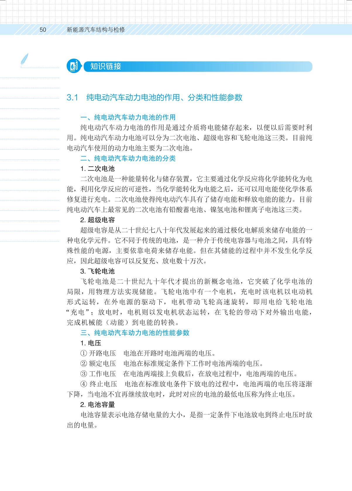 新能源汽车车型众多、结构新颖、技术更新快。本书主要以北汽新能源纯电动汽车为例,较为全面系统地阐述了纯电动汽车的基础知识和必备的维修知识,重点介绍了纯电动汽车的构造、工作原理、使用维护、常见故障诊断和维修方法。本书结合纯电动汽车企业岗位需求,针对纯电动汽车企业需求设计实训项目。 本书共分七个单元,内容包括:纯电动汽车概述、纯电动汽车驱动电机系统、纯电动汽车动力电池系统和电池管理系统、纯电动汽车电子电力辅助系统、纯电动汽车车载网络系统、纯电动汽车整车控制系统、纯电动汽车充电系统。在编写本书的过程中,为了提高学生的学习兴趣,体现以学生为主体、以教师为主导的教学理念,开发了数字化资源,并在书中相应位置放置了资源生成的二维码。通过扫描对应的二维码,即可学习相关数字化资源。也可访问智慧职教(www.icve.com.cn)平台,注册,登录后,在首页点击进入“高教社专区”栏目下的“数字课程”子栏目,搜索本书对应课程“新能源汽车结构与检修”进行在线学习,详见“智慧职教服务指南”。 本书实用性强,适合作为职业院校新能源汽车相关专业的学生教材和纯电动汽车技术培训班的培训教材,也可作为广大纯电动汽车驾驶人员、修理人员和工程技术人员的阅读用书。 授课教师如需要本书配套的教学课件等资源或是有其他需求,可发送邮件至邮箱gzjx@pub.hep.cn索取。 |