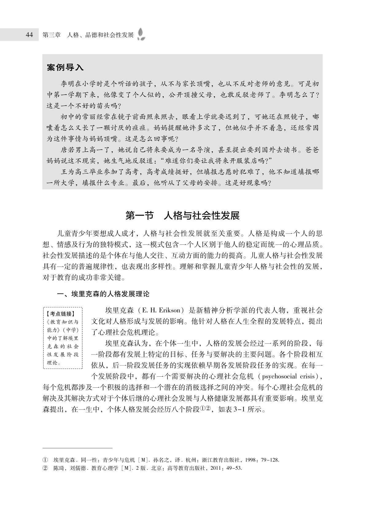 教育心理学是教育学与心理学的交叉学科,既关注学校教育实践中教师如何教,也关注学生如何学。本书在保持第1版知识结构体系的基础上,以培养未来教师的教育教学理论素养和实践教学能力为核心目标,围绕基础教育改革的要求对第1版的内容进行更新修改。为增强知识的系统化与结构化,本次修订完善了各章节的体例设计;为体现信息化时代发展对教材的影响,本次修订用二维码关联了知识点、技能点的讲解微课、知识拓展阅读。同时,为了帮助学习者查漏补缺、掌握相关考点、夯实基础,本次修订将教师资格考试、心理学考研中的知识点与正文进行了关联。 本书可作为心理学、应用心理学、教育学、公共事业管理等专业本科生和研究生教材,可作为各级各类教师培训学校、研究生课程班的教材,可作为教育科研人员的参考资料,还可作为各种考试(如研究生入学考试、教师资格考试等)的参考用书。 |