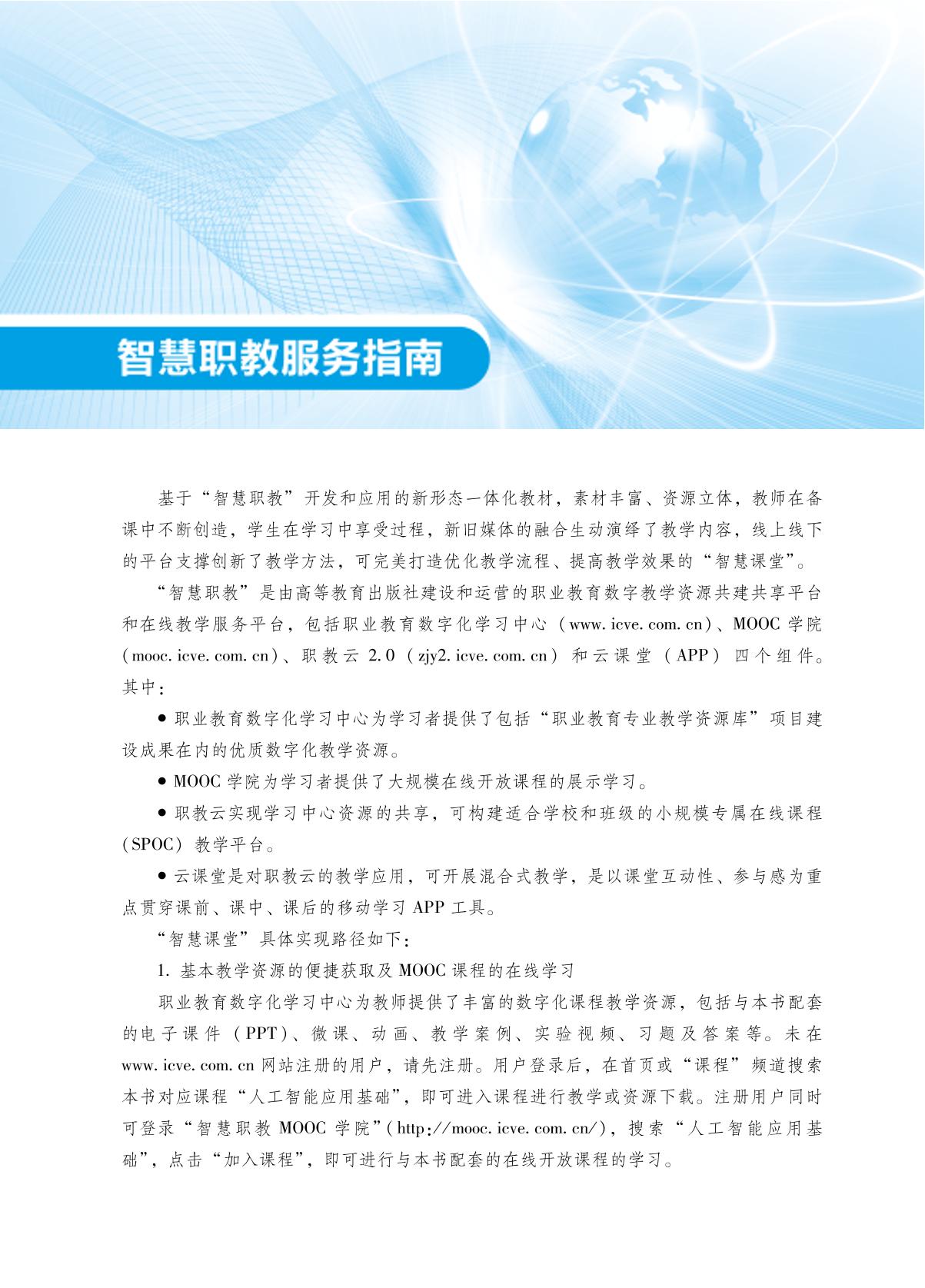TensorFlow是一个流行且非常灵活的深度学习框架,它的出现降低了人工智能时代的入门门槛,提高了开发效率。本书针对TensorFlow 2x版本编写,基于工作过程进行系统化的体例设计,采用理论知识结合项目实例的形式,由浅入深地介绍TensorFlow深度学习框架的原理、特性、编程技巧和应用方法。本书包含深度学习的入门知识和大量实践经验,内容通俗易懂,书中省略了烦琐的数学模型推导,从实际应用问题出发,案例丰富,实用性强。 本书配套的数字课程在“智慧职教”(www.icve.com.cn)平台上线,读者可登录平台学习,授课教师可以调用本课程构建符合自身教学特色的SPOC课程,详见“智慧职教服务指南”。此外,本书还提供了其他丰富的数字化课程教学资源,包括微课视频、电子课件(PPT)、实训案例、资源文件及源代码等,教师可发邮件至编辑邮箱1548103297@qq.com获取。 本书既可作为高等职业院校人工智能课程的教材,也可供想快速上手TensorFlow、了解深度学习技术及应用的人员参考。 |