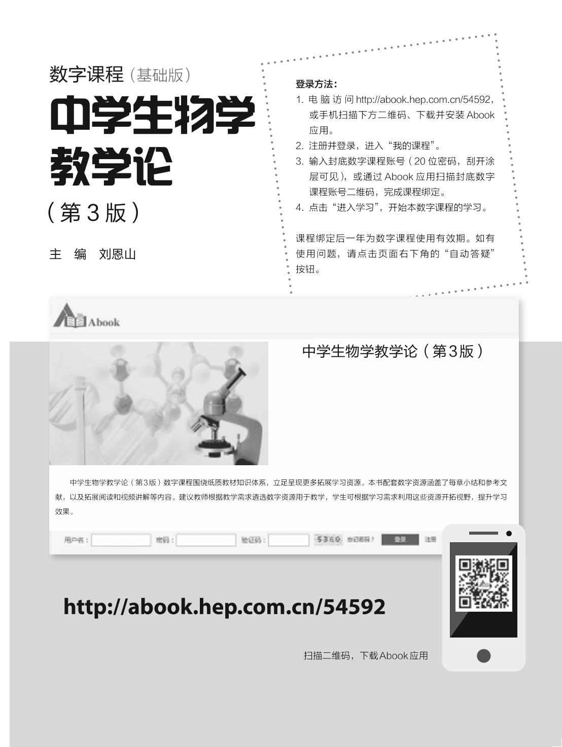 《中学生物学教学论(第3版)》立足于国内教育改革的推进、生物学课堂教学的实践,以及国际科学教育的发展,旨在提高职前和在职中学生物学教师教学理论和技能,同时助力中学生物学课程目标的达成。新版教材重点强调了对生物学核心素养的理解和生物学课程改革的方向与任务,凸显了对科学本质理解的要求和对科学教育理论的理解与应用,增加了适应改革需要的教学策略,并在保留原有基础性内容的同时,更新了教育技术、教师备课、教师专业发展、教学评价和校外活动等内容。 全书共12章,内容包括中学生物学课程、自然科学的本质特征、生物学核心素养、生物学教育的学习和教学理论、生物学课堂常用的教学策略、基本教学技能、在课堂中使用多种教育技术、生物学教师的备课、生物学教育评价、生物学校外活动与教学中的安全、生物学教师的专业素养发展与教育研究,以及国际科学教育发展概览。本教材配套的数字课程与纸质教材一体化设计,内容包括本章小结、参考文献,以及拓展阅读与视频讲解等丰富内容。 本书是一本具备了课程目标达成、反映时代要求和迭代升级教学的实用专业教材,不仅适合师范院校生物学教育专业的学生使用,也可供在职中学生物学教师进修学习与参考。 |