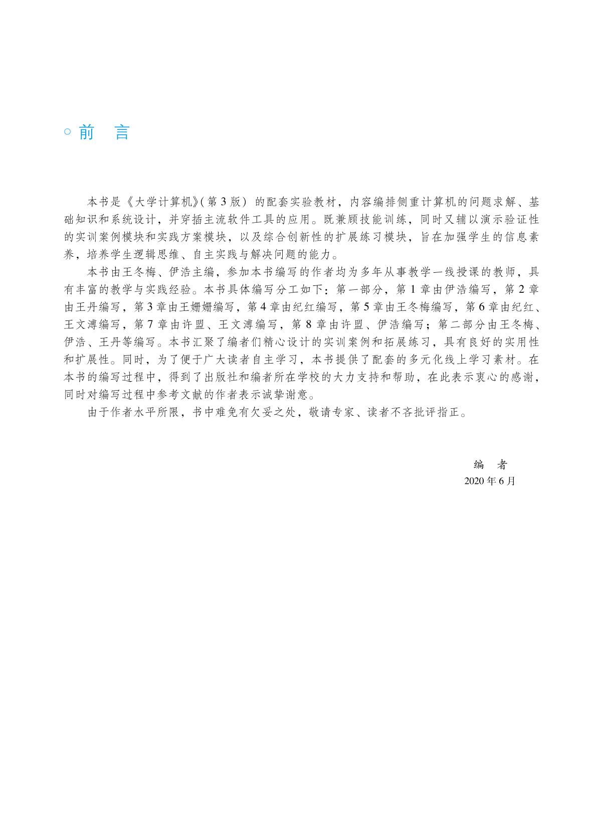 本书依据教育部高等学校大学计算机课程教学指导委员会提出的大学计算机基础课程教学基本要求编写,全书内容基于计算机应用知识模块展开,穿插主流软件工具的应用。通过图文并茂、循序渐进的模块化内容组织形式,使理论学习落到实践应用的实处。 全书主要内容包括计算机组成和系统安装、跨平台操作系统、文字编辑与排版、电子表格处理、演示文稿设计与制作、数据规范化与数据处理、Internet应用、常用工具软件,并根据理论教材的章节安排,设置了相应的习题及参考答案。 本书图文并茂、模块清晰、循序渐进,提供了丰富的配套电子资源,可作为各类高校计算机实验课程的教材,也可作为培训和自学者的理想参考书。 |