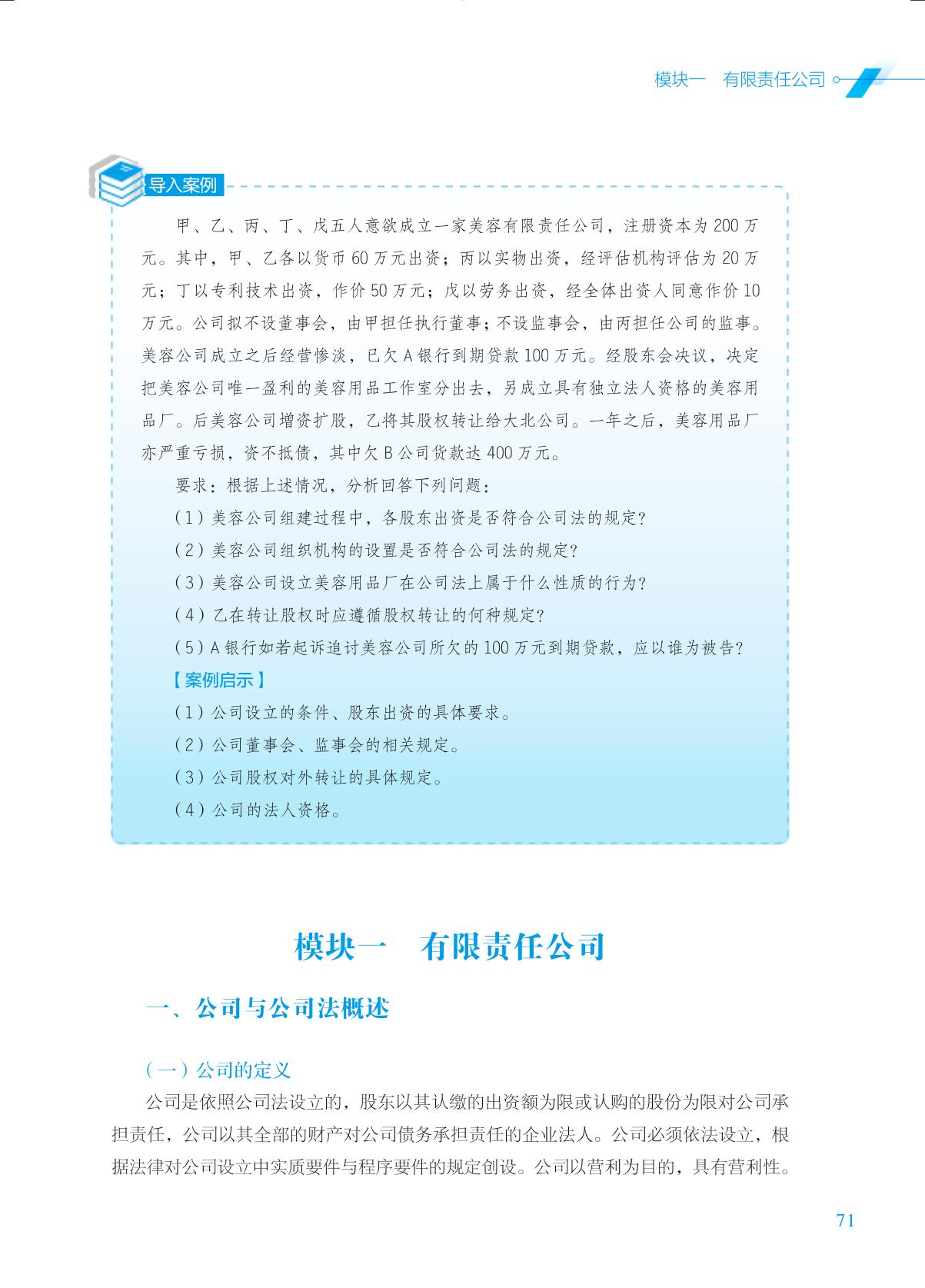 本教材是高等职业教育经管专业基础课“我爱MOOC”系列新形态一体化教材,省级精品在线开放课程“经济法”配套教材。 本教材以黄亚宇主编主持的省级教学成果奖一等奖获奖成果“SPOC 混合式教学模式:高职财经类专业‘经济法’课程教学创新与实践”为基础进行编写,并融入了李玉民主编主持的国家级教学成果奖一等奖获奖成果“机电类专业创客型工匠‘六创共振’培养模式研究与实践”,将创客教育与经济法教学相融合,“六创共振”培养“崇德向善、德法兼修”的高职创客型财经商贸人才。 本教材编写突出以下鲜明特色:一是以《中华人民共和国民法典》为依据编写教材内容。二是采取“专业经济法通用模块+ 学生核心技能实训+ 财经商贸类各专业自选模块”的编写体系,其中,财经商贸类专业经济法通用模块包括经济法律概述、合同法律制度、公司法律制度、市场规制法律制度、劳动与社会保险法律制度、经济仲裁与诉讼六部分;学生核心技能实训包括学生模拟创办公司实训、学生模拟法庭实训、学生模拟仲裁庭实训三部分;财经商贸类各专业自选模块包括财经法律法规简介、营销法律法规简介、电子商务法律法规简介、金融法律法规简介、国际贸易术语简介五个部分,并融入了国际化视野。三是结合后疫情时代出现的经济法律问题,每个项目均设计了“后疫情时代中的经济法”互动讨论。四是融入了省级课程思政说课比赛作品成果,每个模块都设计了“课程思政”板块。 本书已在智慧职教平台(www.icve.com.cn)和爱课程(中国大学MOOC)平台上建有“经济法”在线开放课程,包括法律微课、视频、动画等丰富数字化资源,并精选优质资源做成二维码标注于教材边白处。此外,本书还配有PPT、习题答案等丰富数字化资源,具体获取方式详见书后“郑重声明”页的资源服务提示。 本书既适用于高职高专财经商贸类各专业学生学习使用,也可以作为自学者和相关从业人员的重要参考用书。 |